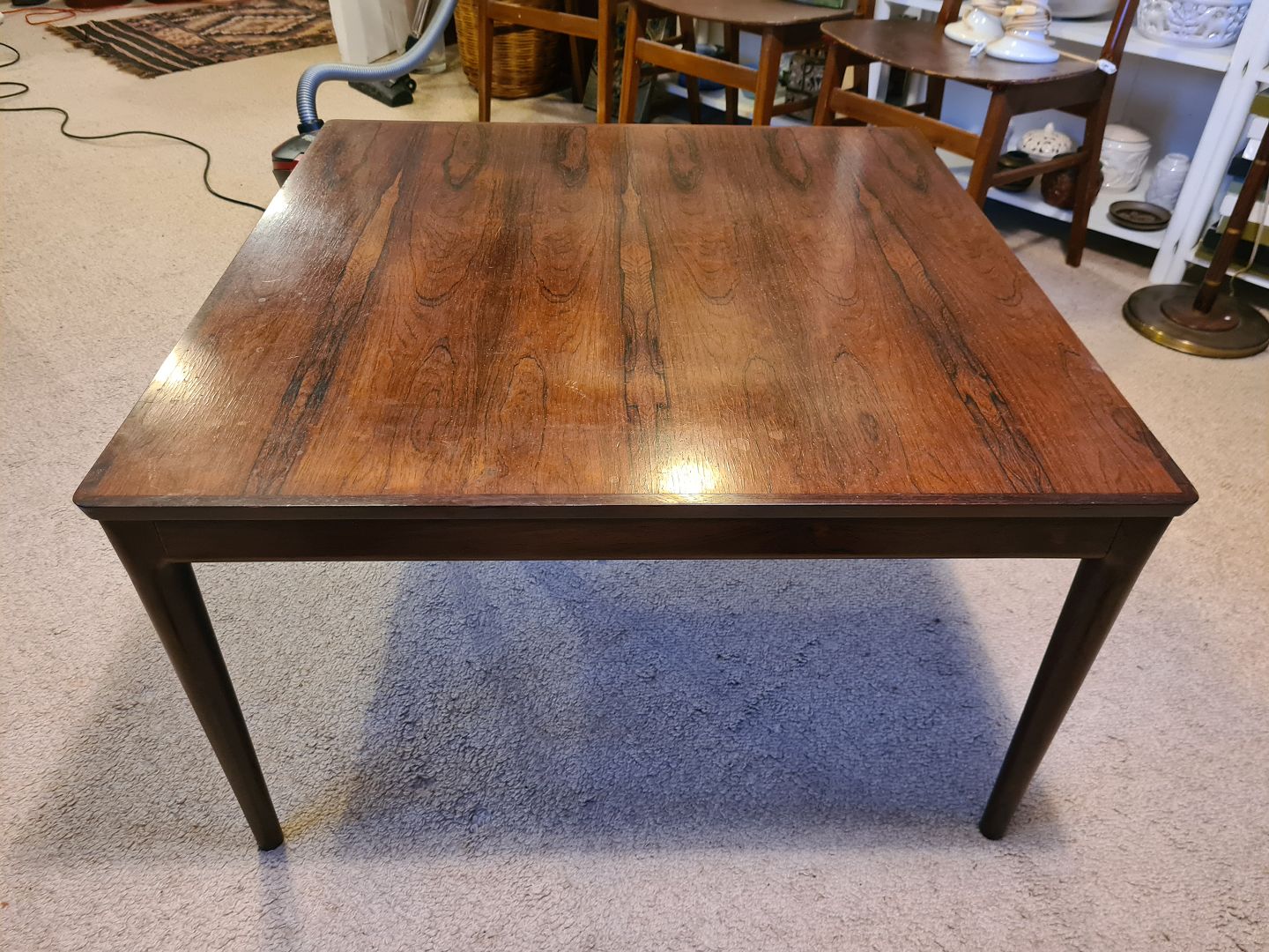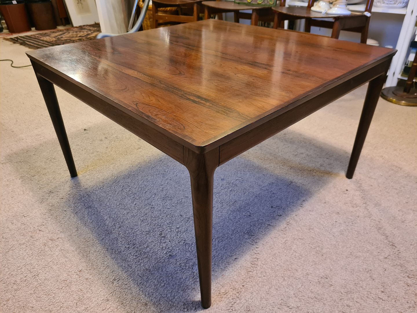 Dansk snedkermester sofabord fra 1960´erne i finéret palisander. Fremstår i rigtig pæn brugt stand.