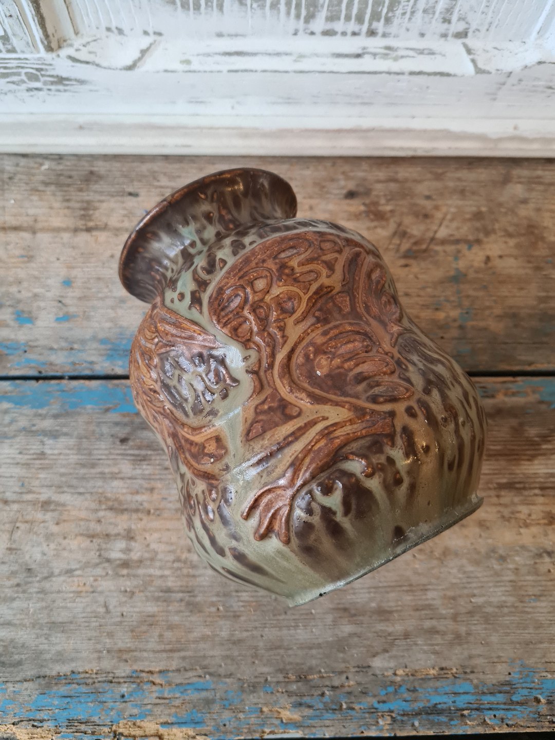 Bode Willumsen unika vase fra eget værksted. Smuk glasur dekoreret med fugle i relief.