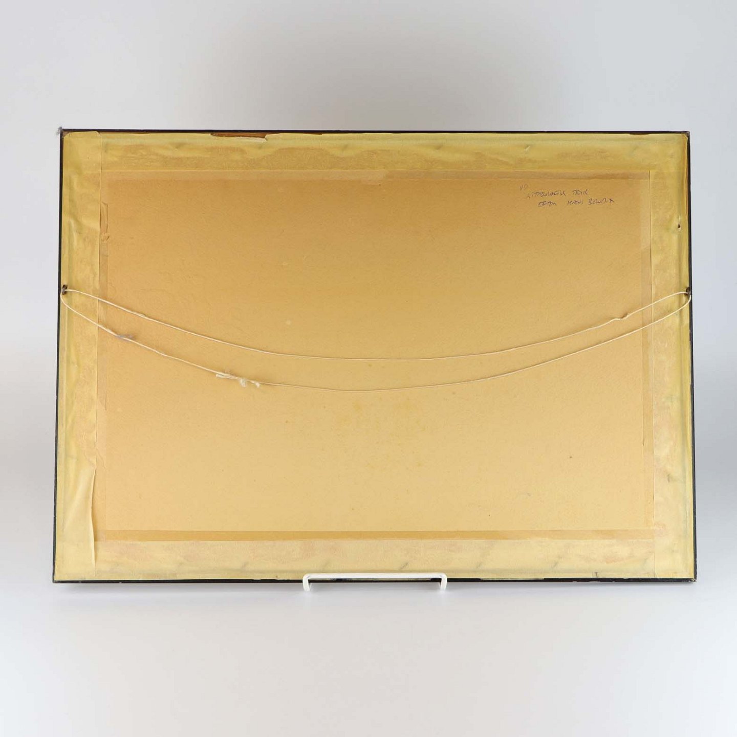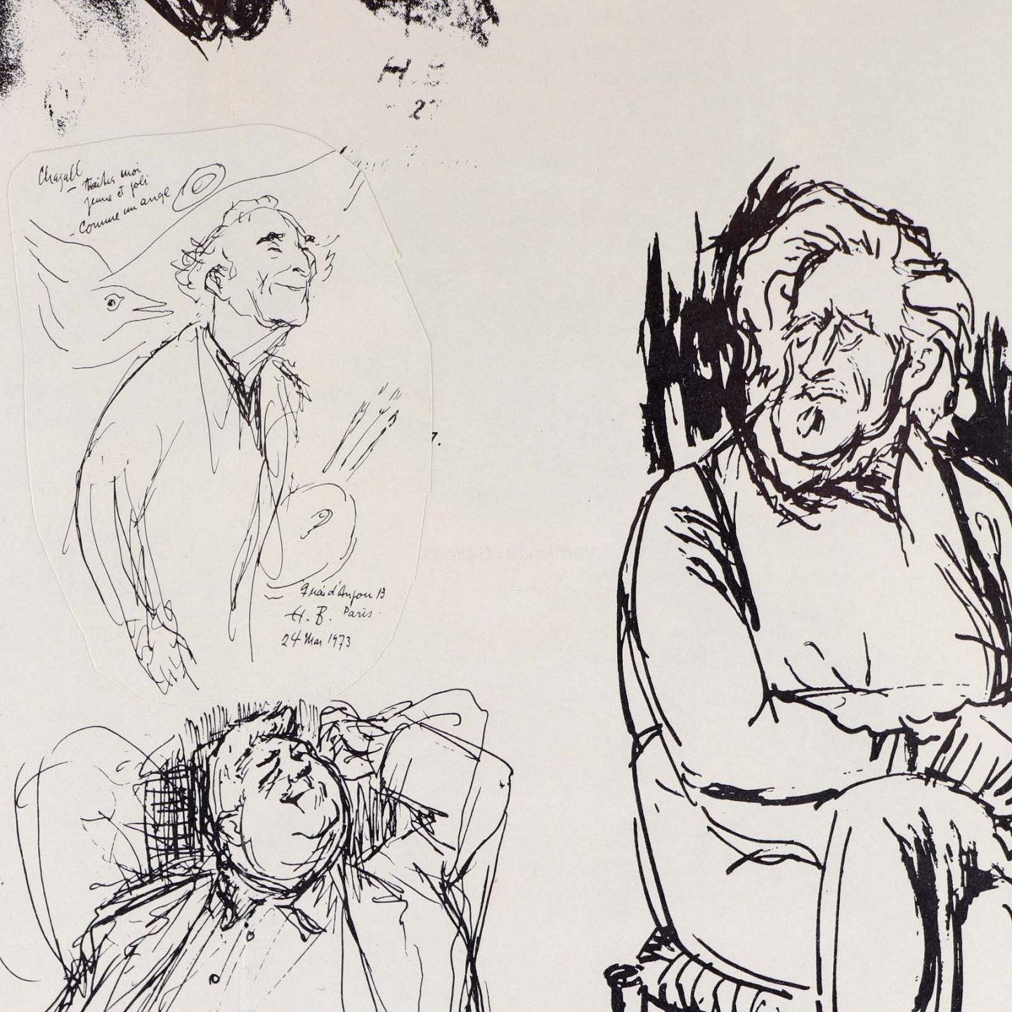 Glasindrammet litografisk tryk med portrætter af kendte mennesker
