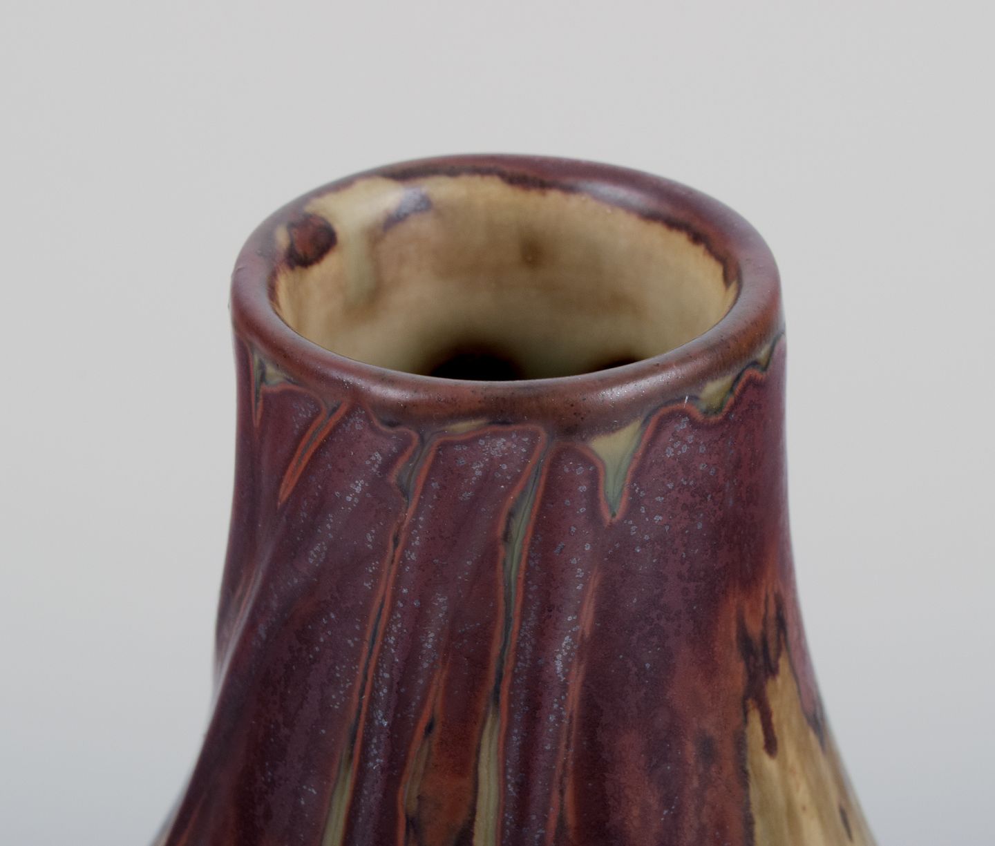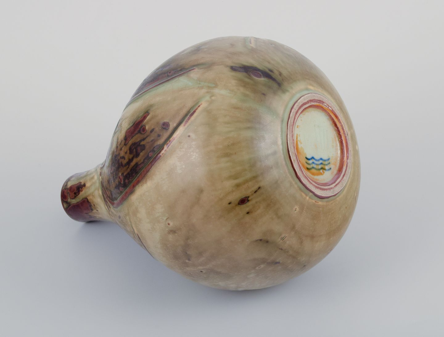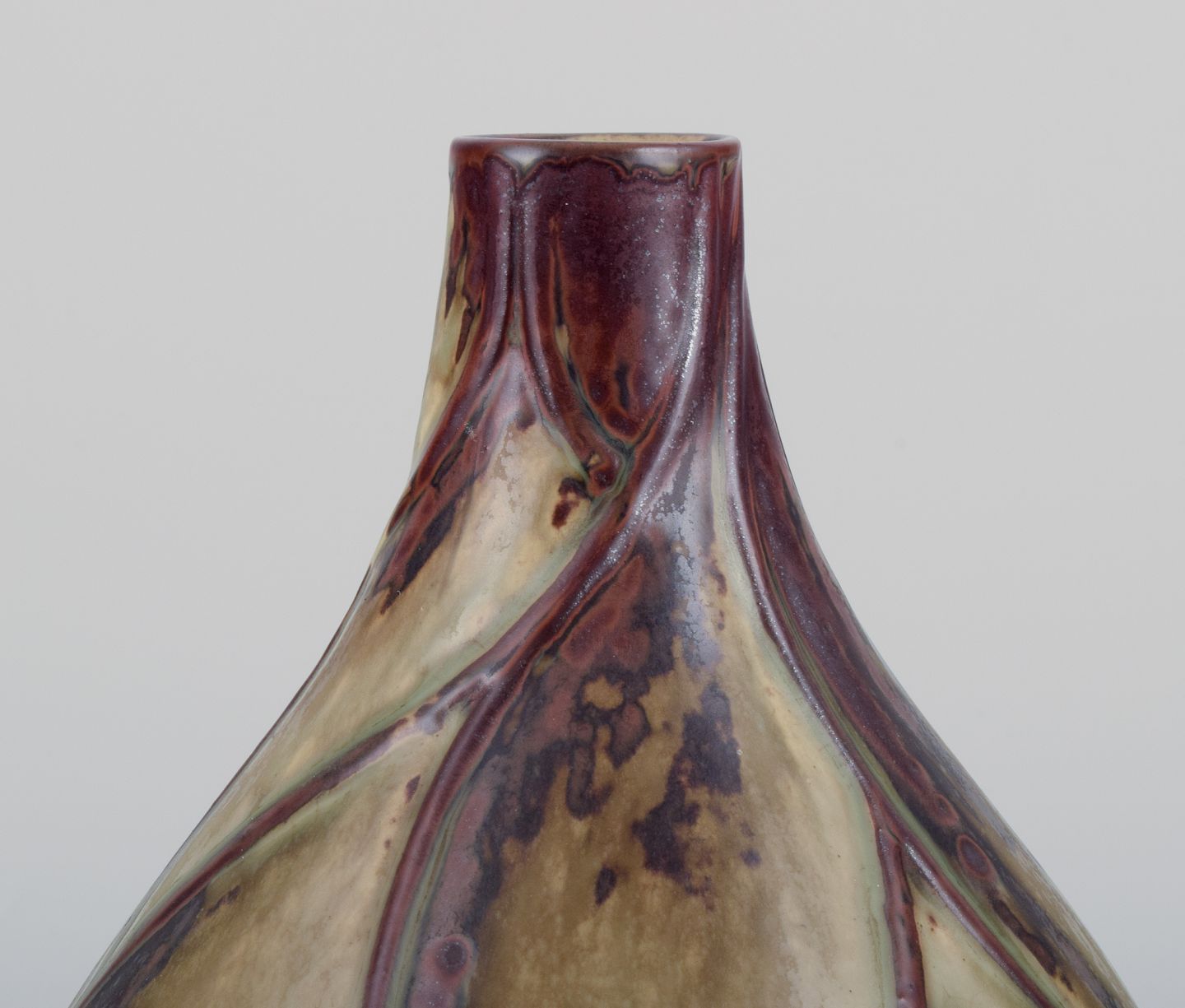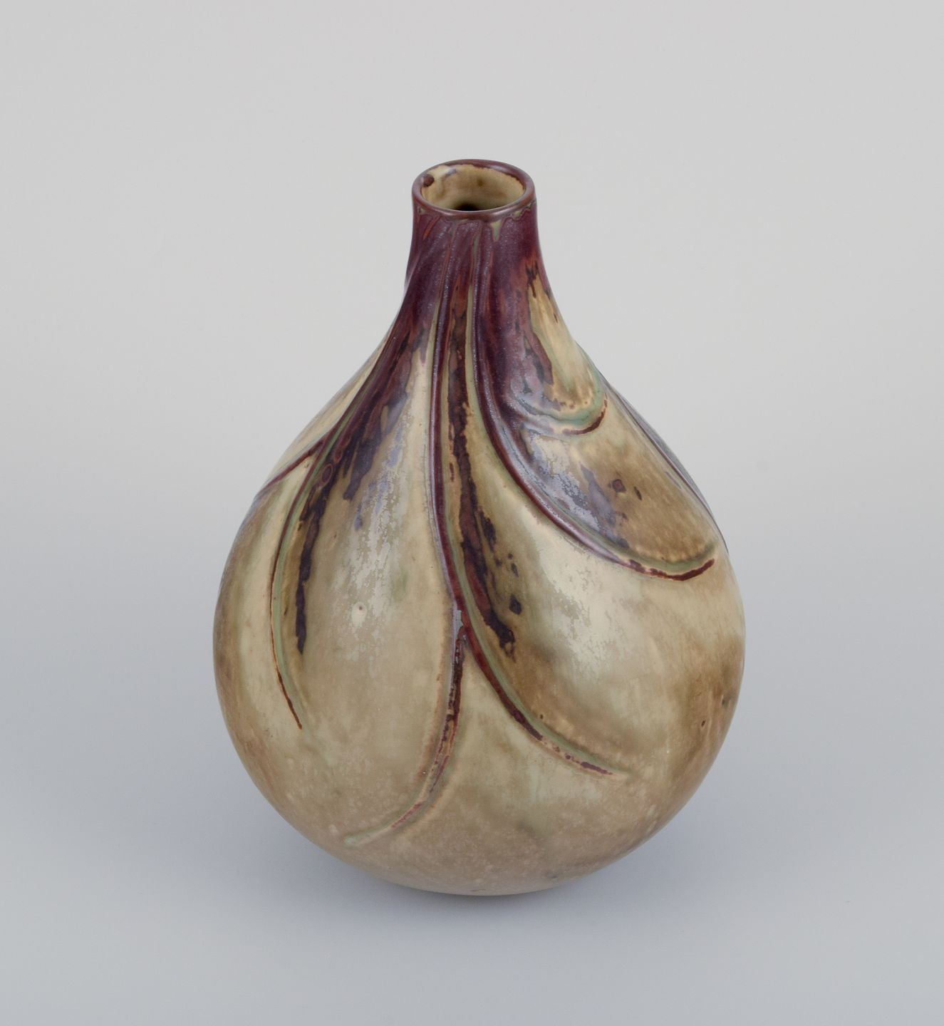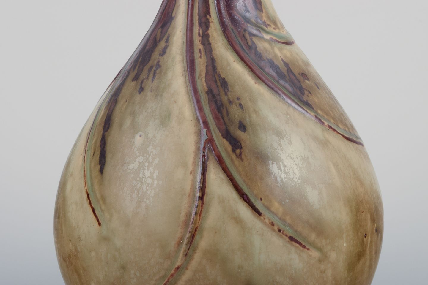 Axel Salto (1889-1961), løgformet vase af stentøj modelleret med mønster i relief, dekoreret med sung glasur.