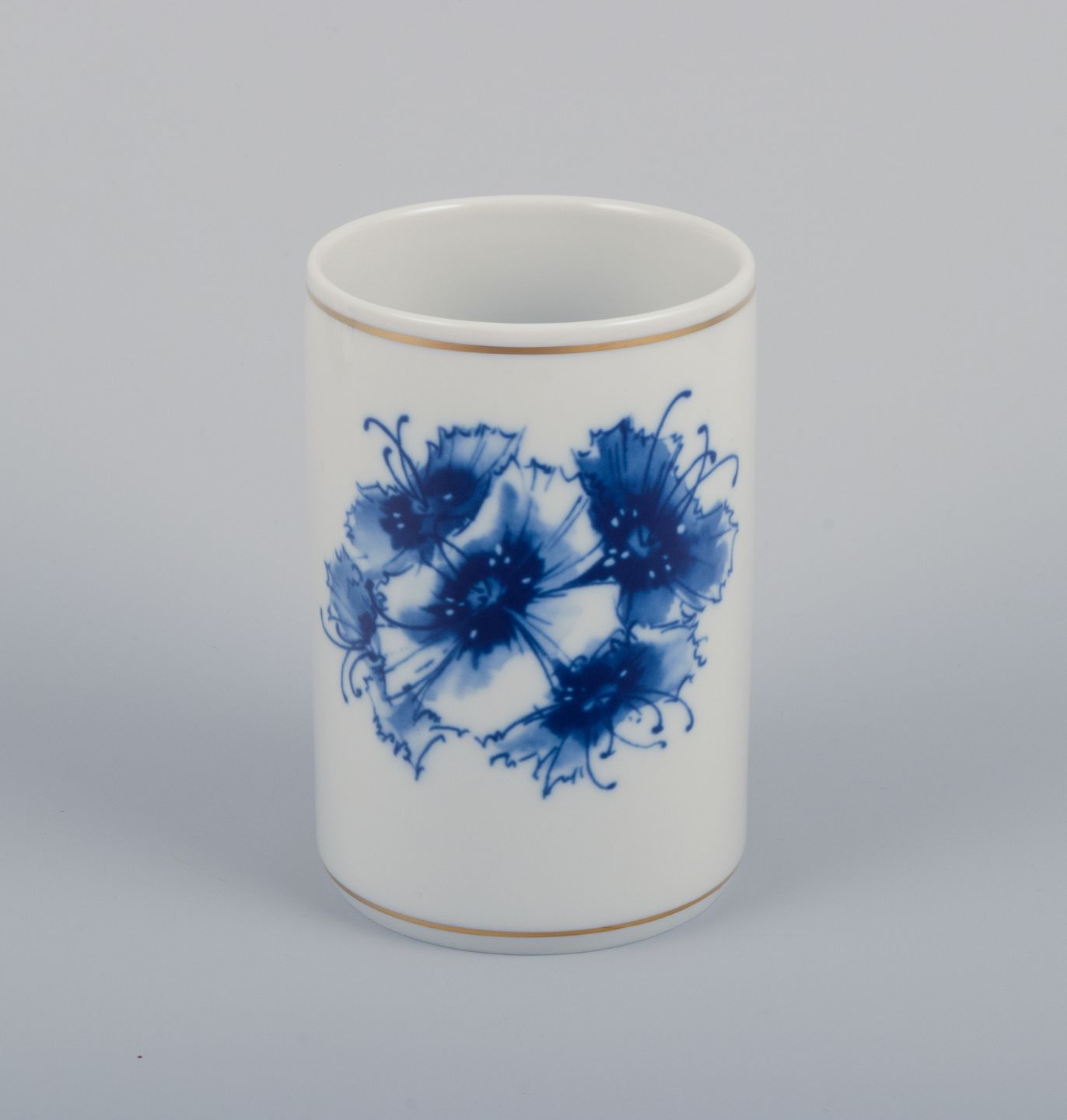 Meissen, Tyskland. Fire vaser. Hånddekoreret med blå blomstermotiver, guldkant.