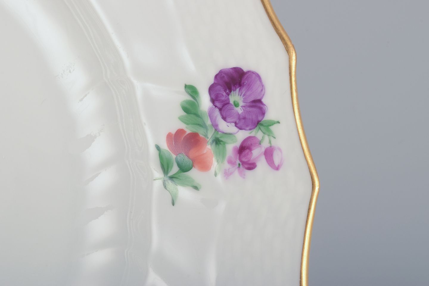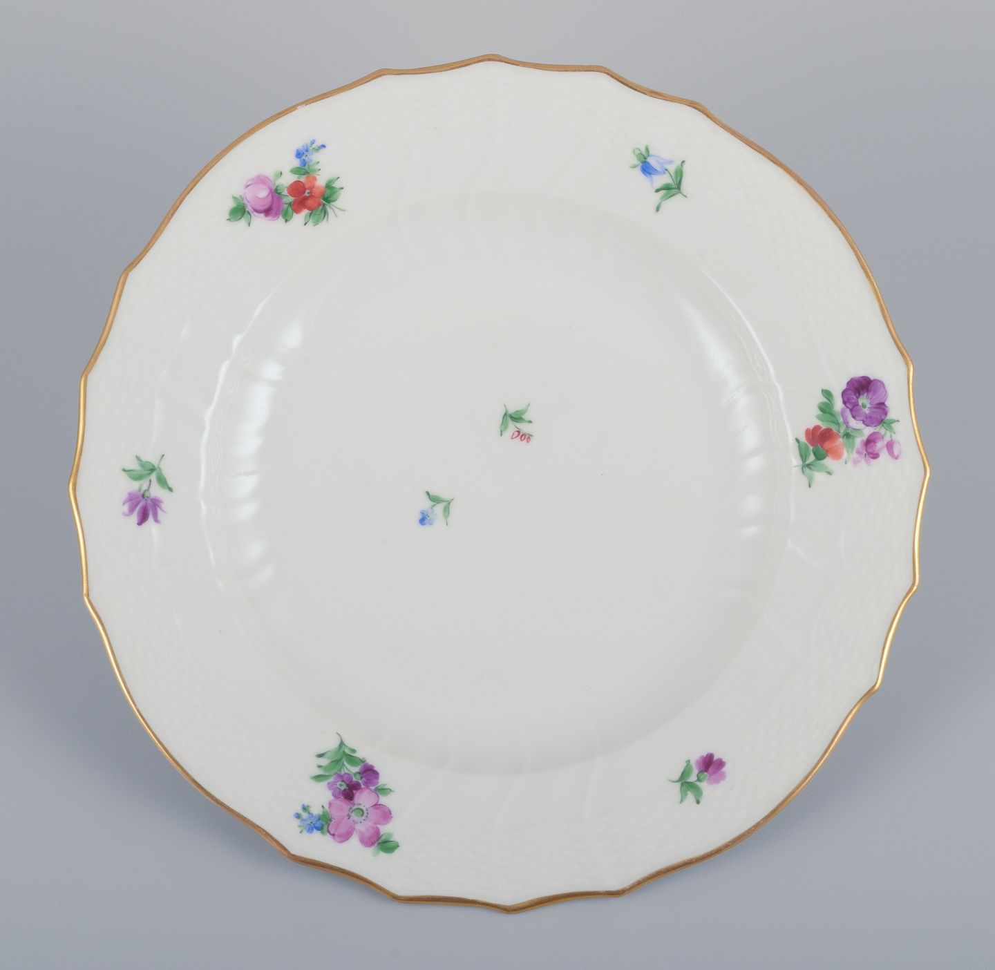 Royal Copenhagen Saksisk Blomst. Seks middagstallerkner i porcelæn. Håndmalet med polykrome blomster. Guldkant.