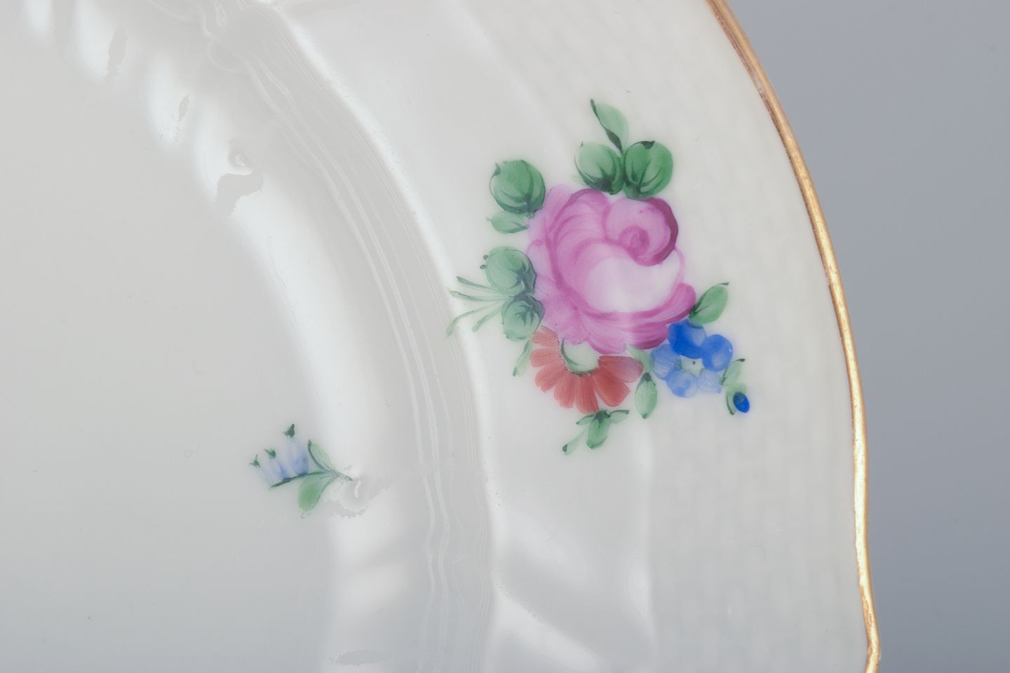 Royal Copenhagen Saksisk Blomst. Seks middagstallerkner i porcelæn. Håndmalet med polykrome blomster.
