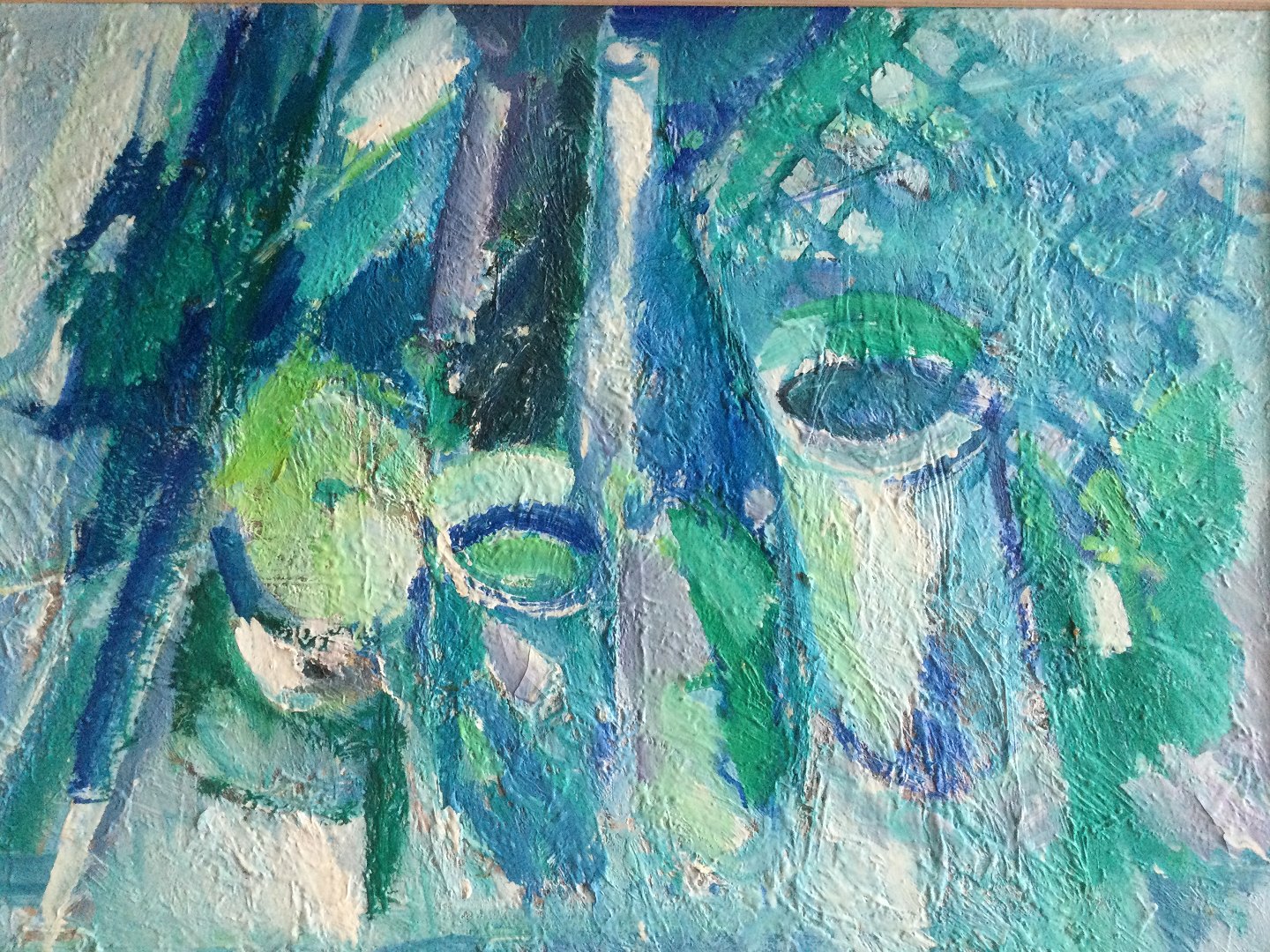 Maleri - Bendt Schneevoigt - Opstilling med flasker og krukker 1983.