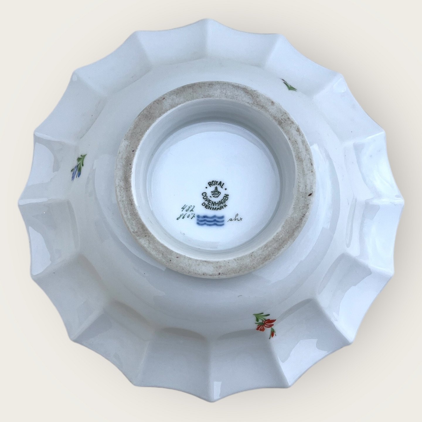 | Royal Copenhagen, Strø blomst / let Henriette, Skål på fod, 22cm i diameter,, 6cm høj, 1.sortering *Pæn stand*