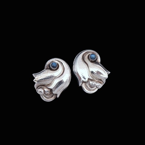 Georg Jensen. Sterling Silver Screw-back Earrings #100 with Moonstone.