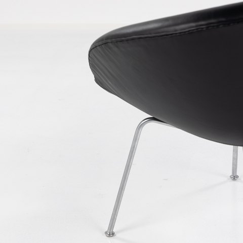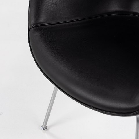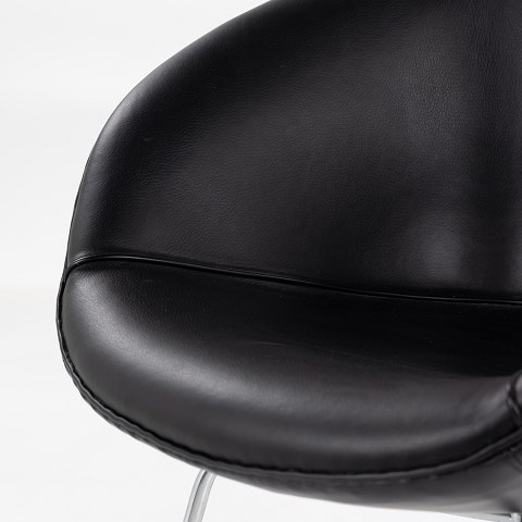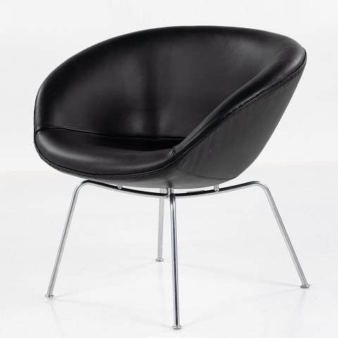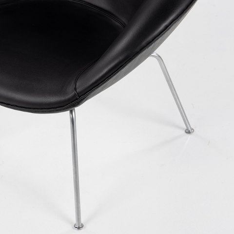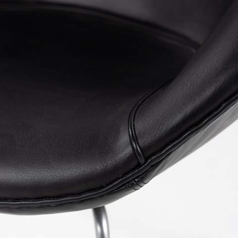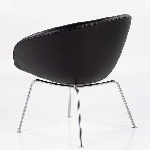 AJ 3318 - 'Gryden'-lænestol i sort 'King'-læder og ben af stål.