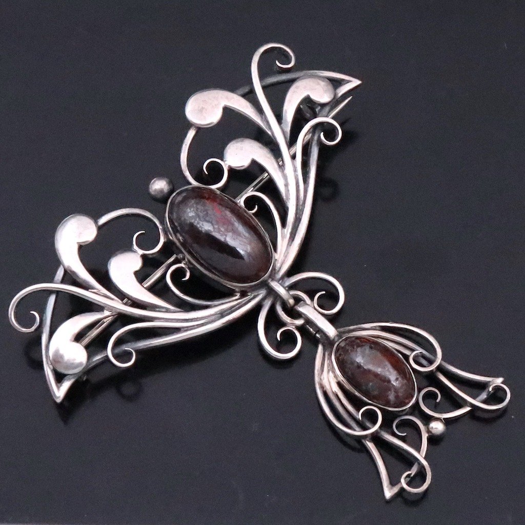 Otto Strange Friis. Skønvirke Broche i sølv opaler.