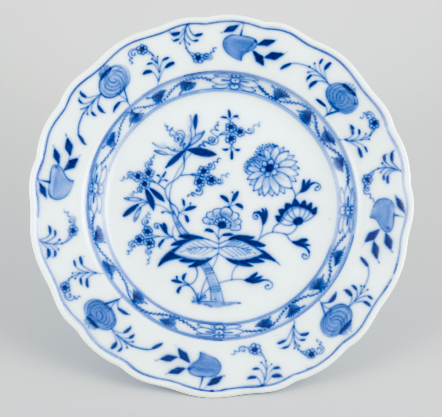Meissen, Tyskland. Løgmønstret. Fire antikke middagstallerkner.