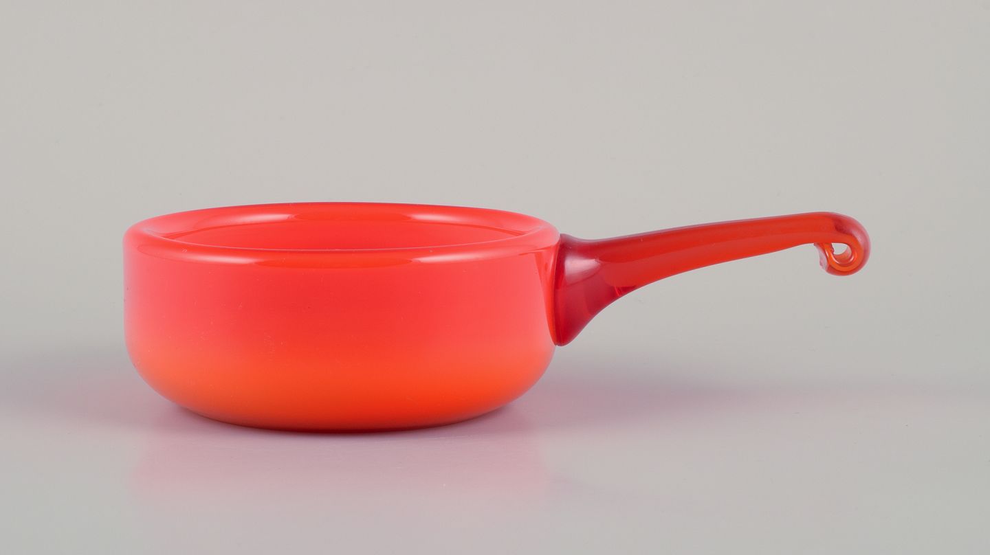 "Palet" kasserolle med håndtag i orange og hvidt kunstglas.