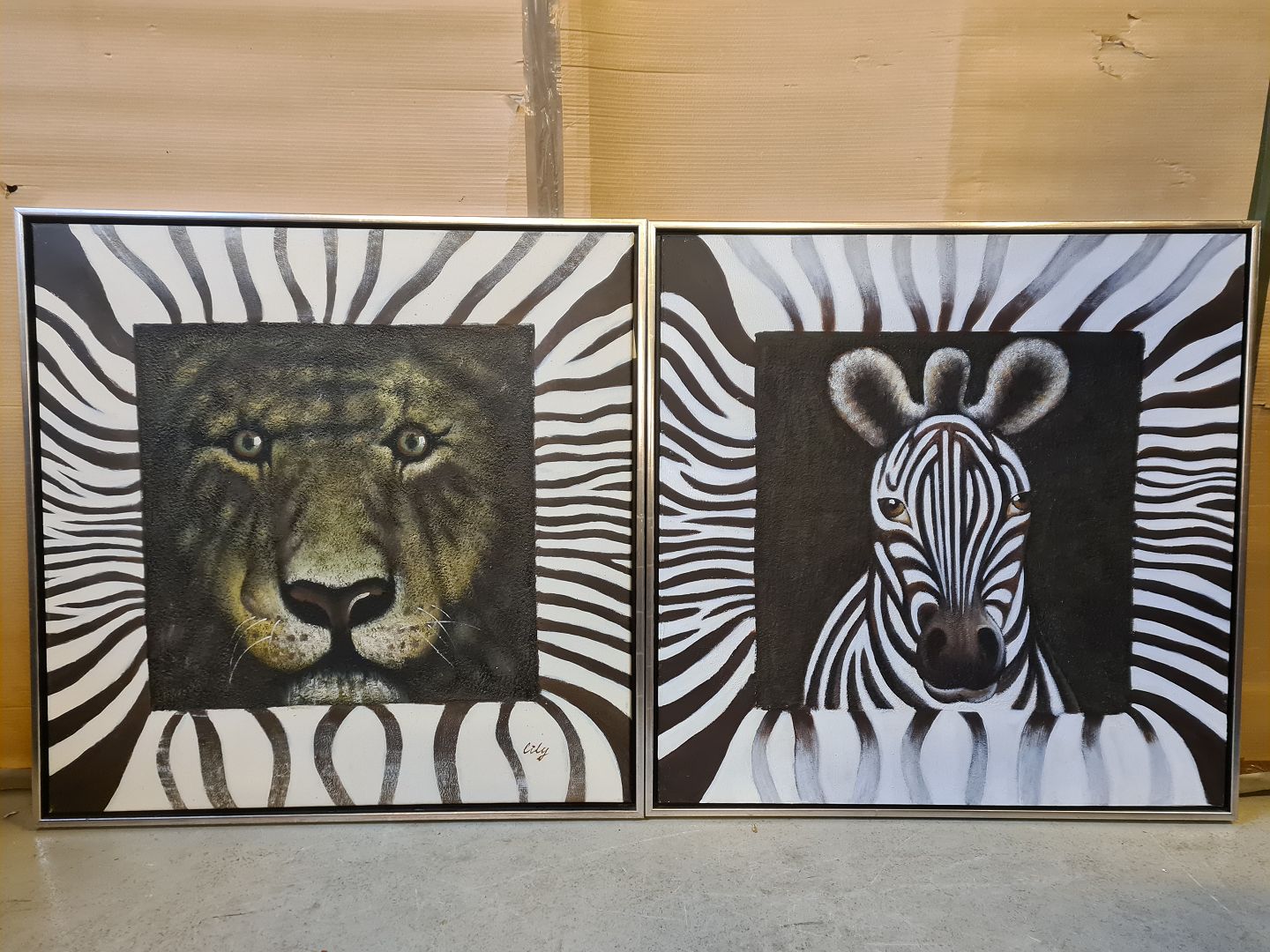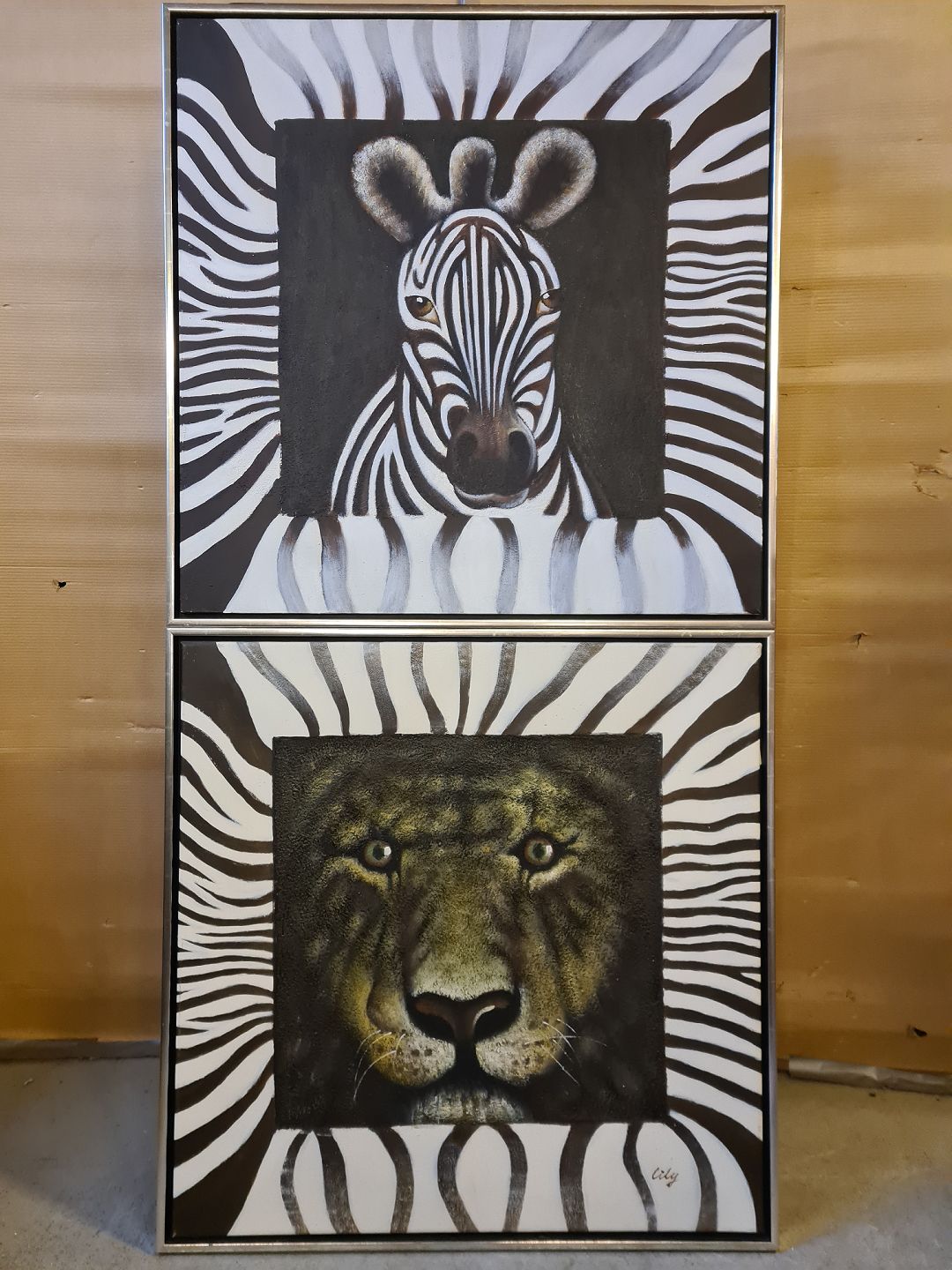 2 Malerier af Lily Huang i sølvmalet ramme, fra 2000erne.