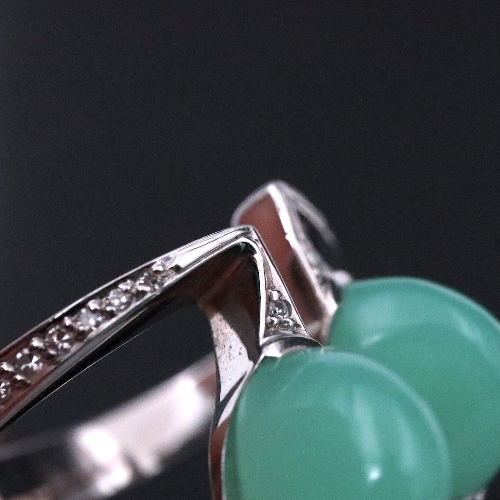 Boy Johansen - Denmark. 18k Gold Ring with Chrysoprase and Diamonds.