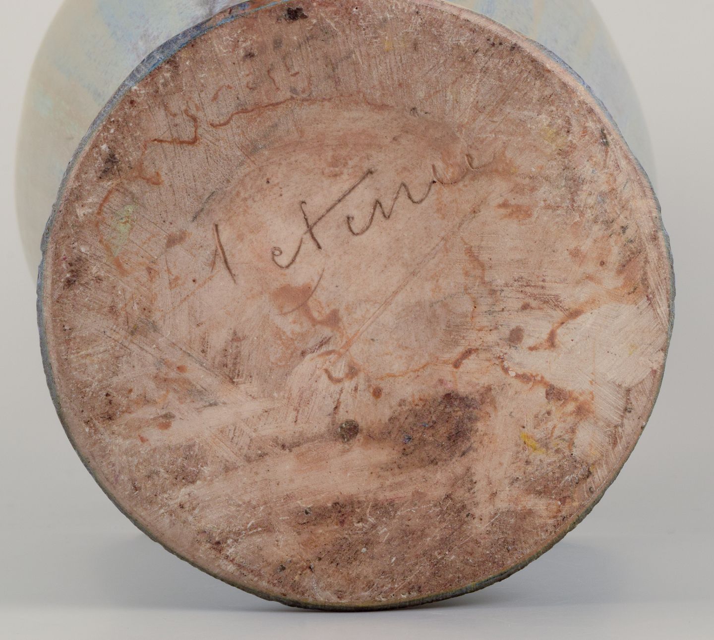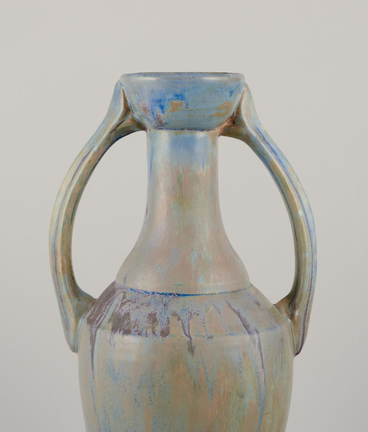 Klassisk amfora-form. Håndglaseret i blå, grønne og brune nuancer.
