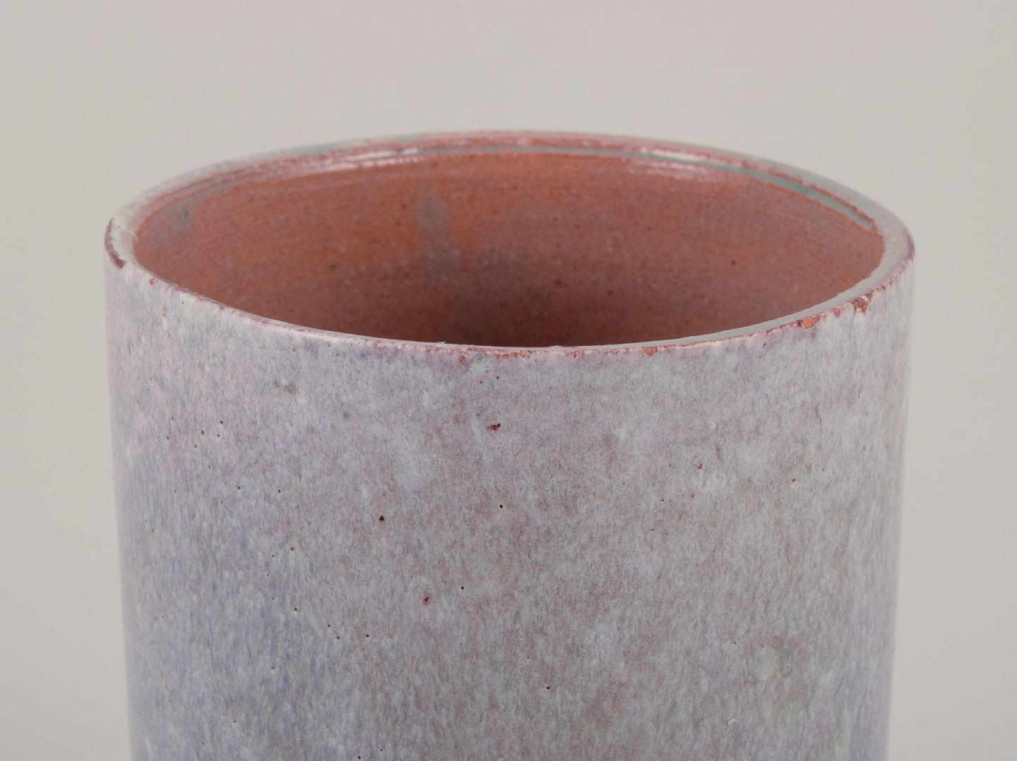 Unika keramikvase. Cylinderformet. Glasur i grågrønne toner.