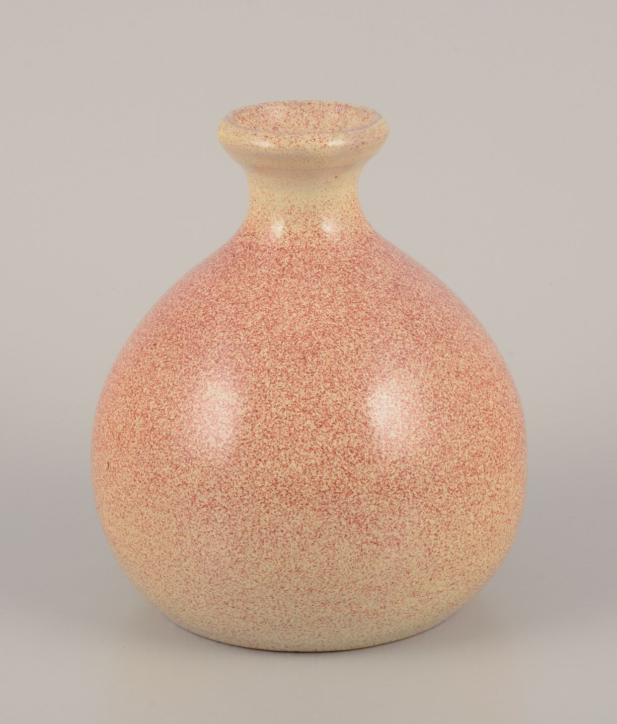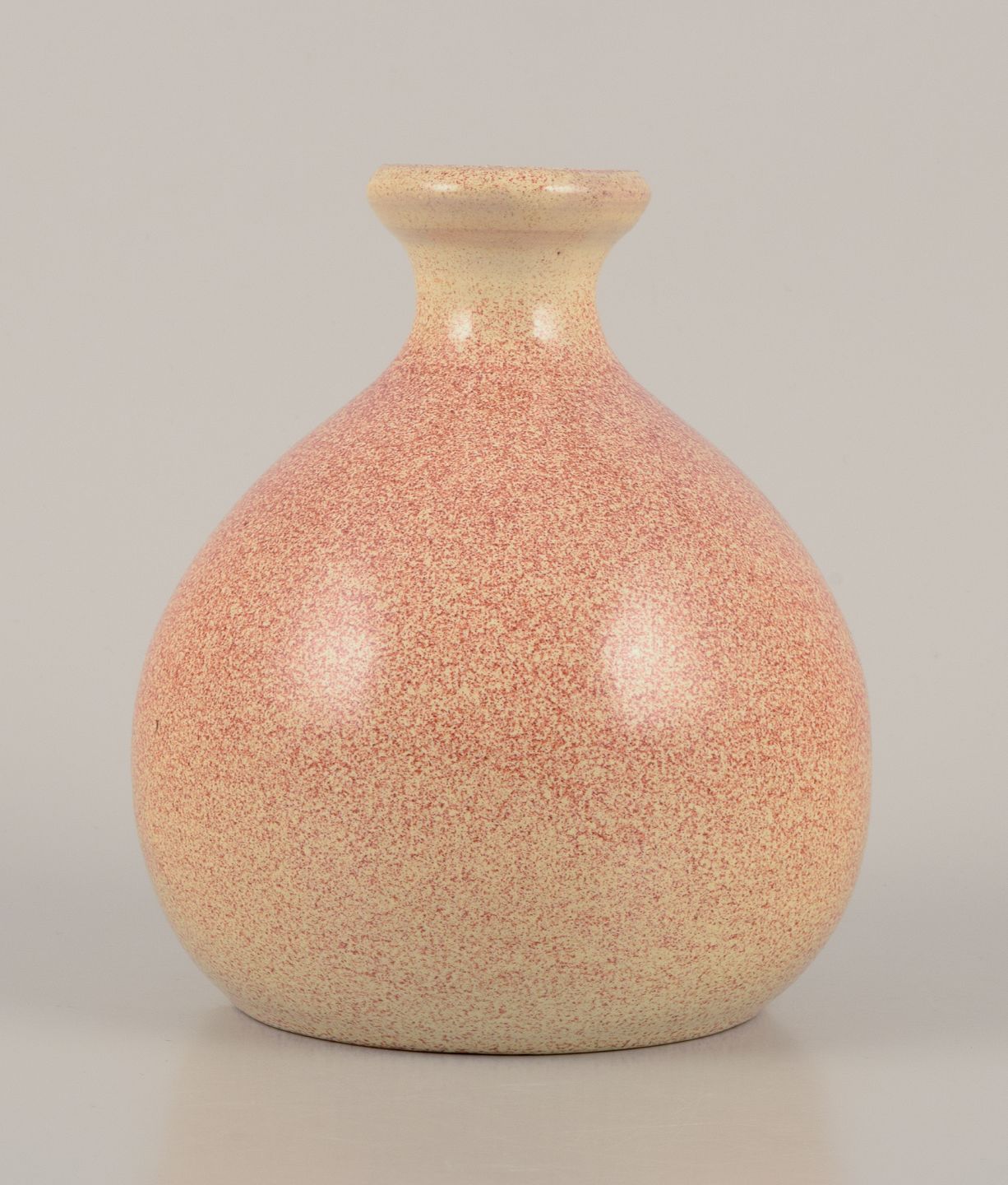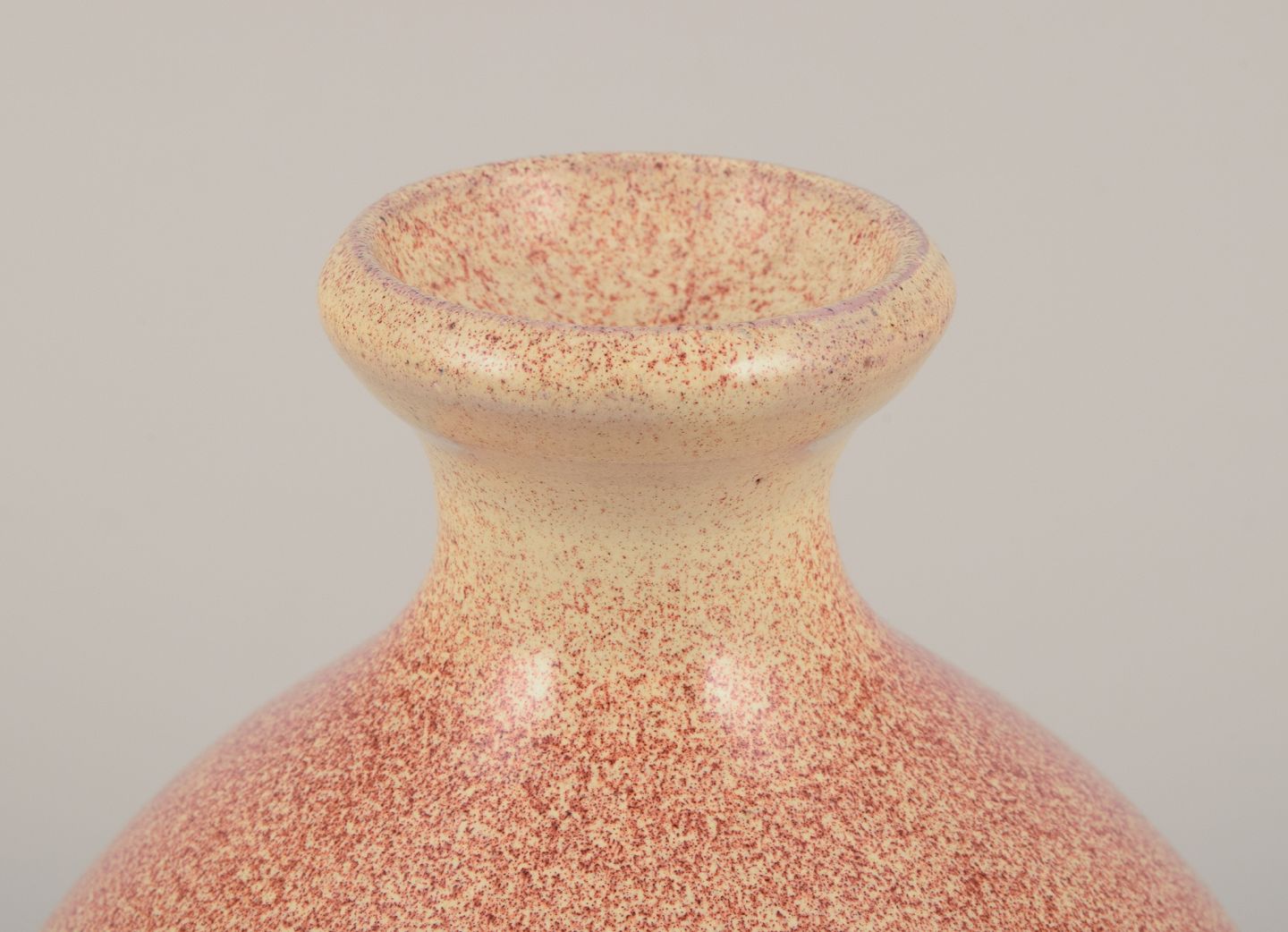 Unika keramikvase, rund form. Glasur i gulbrune nuancer.