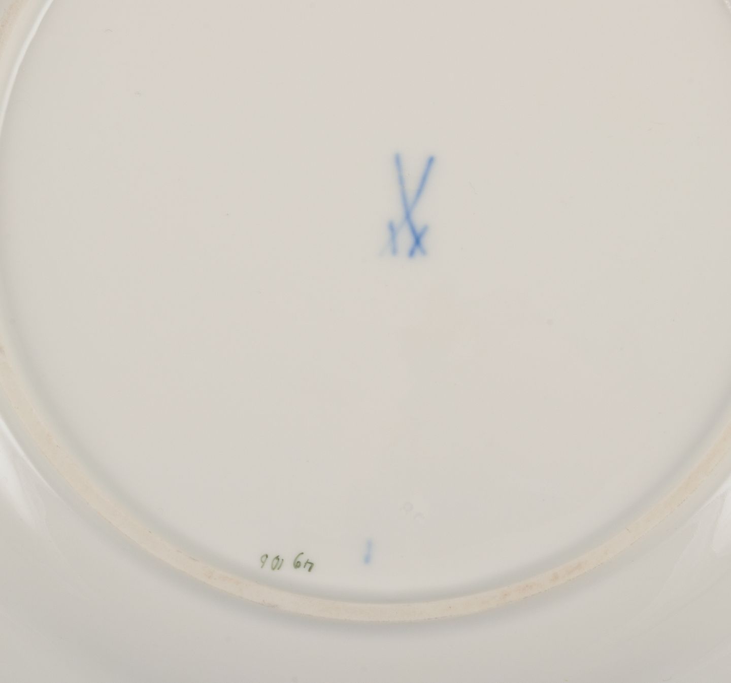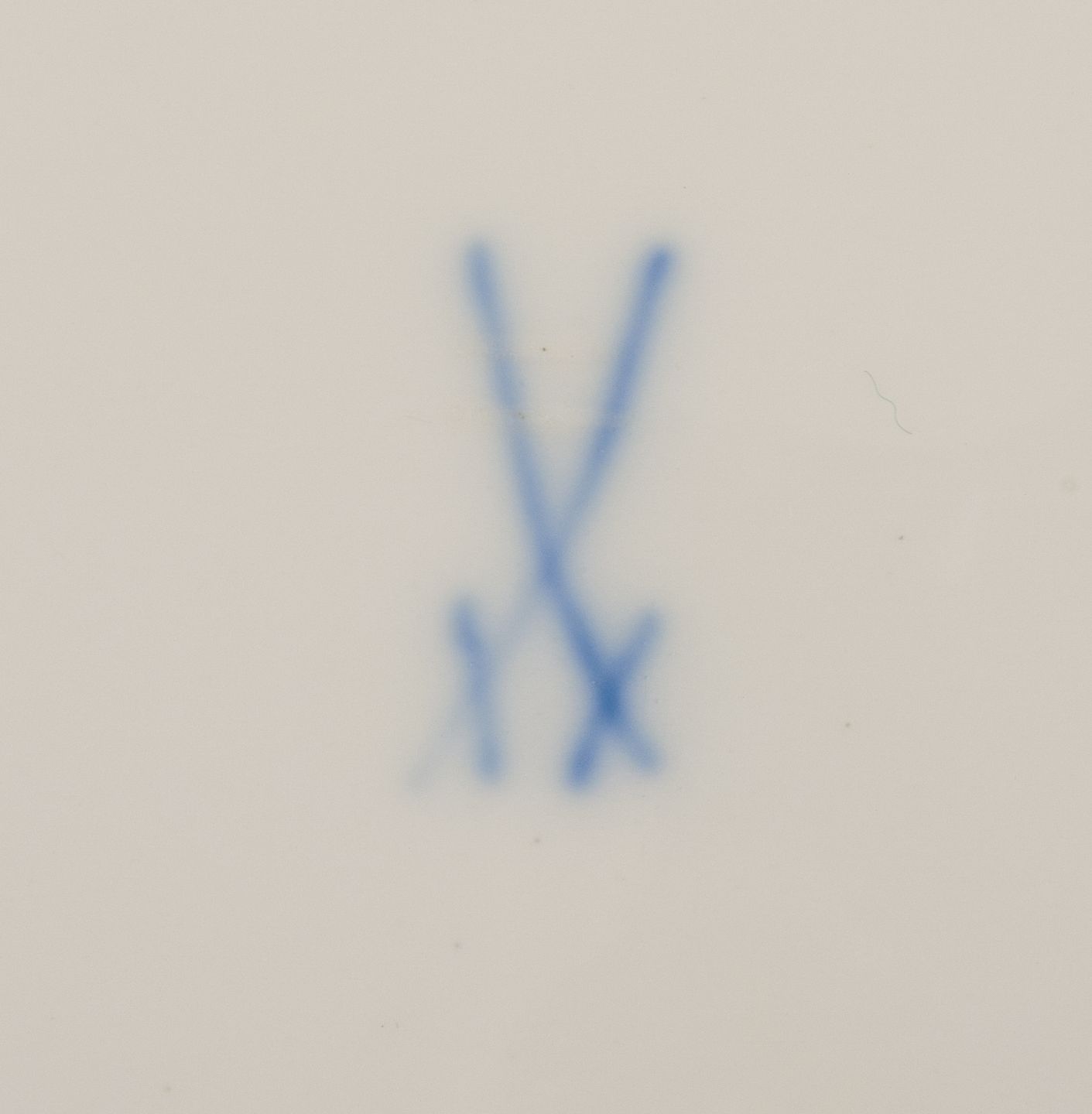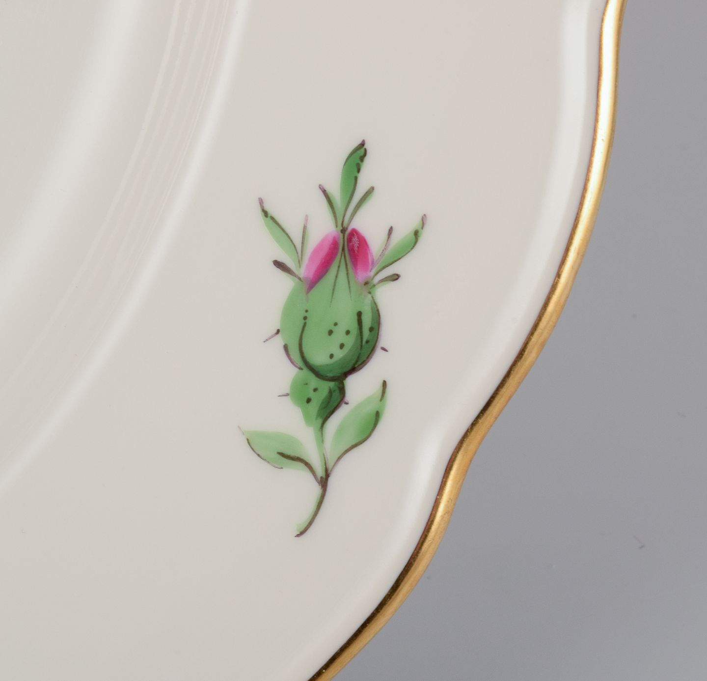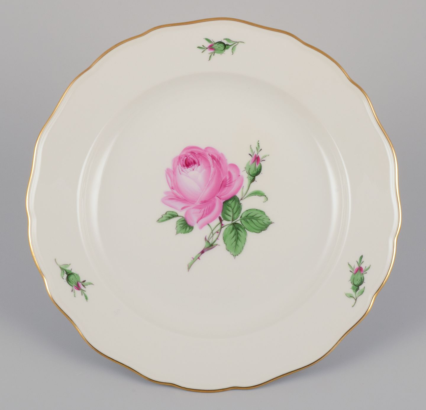 Meissen, Tyskland. Fire middagstallerkner med motiv af lyserød rose.