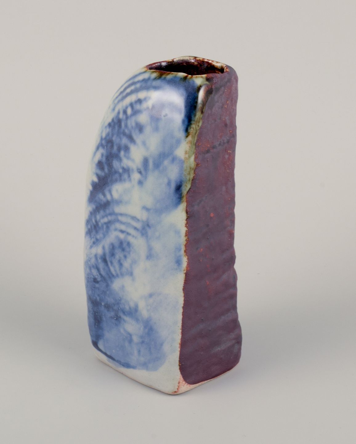 Vase i keramik. Organisk form. Glasur i mange farvenuancer.