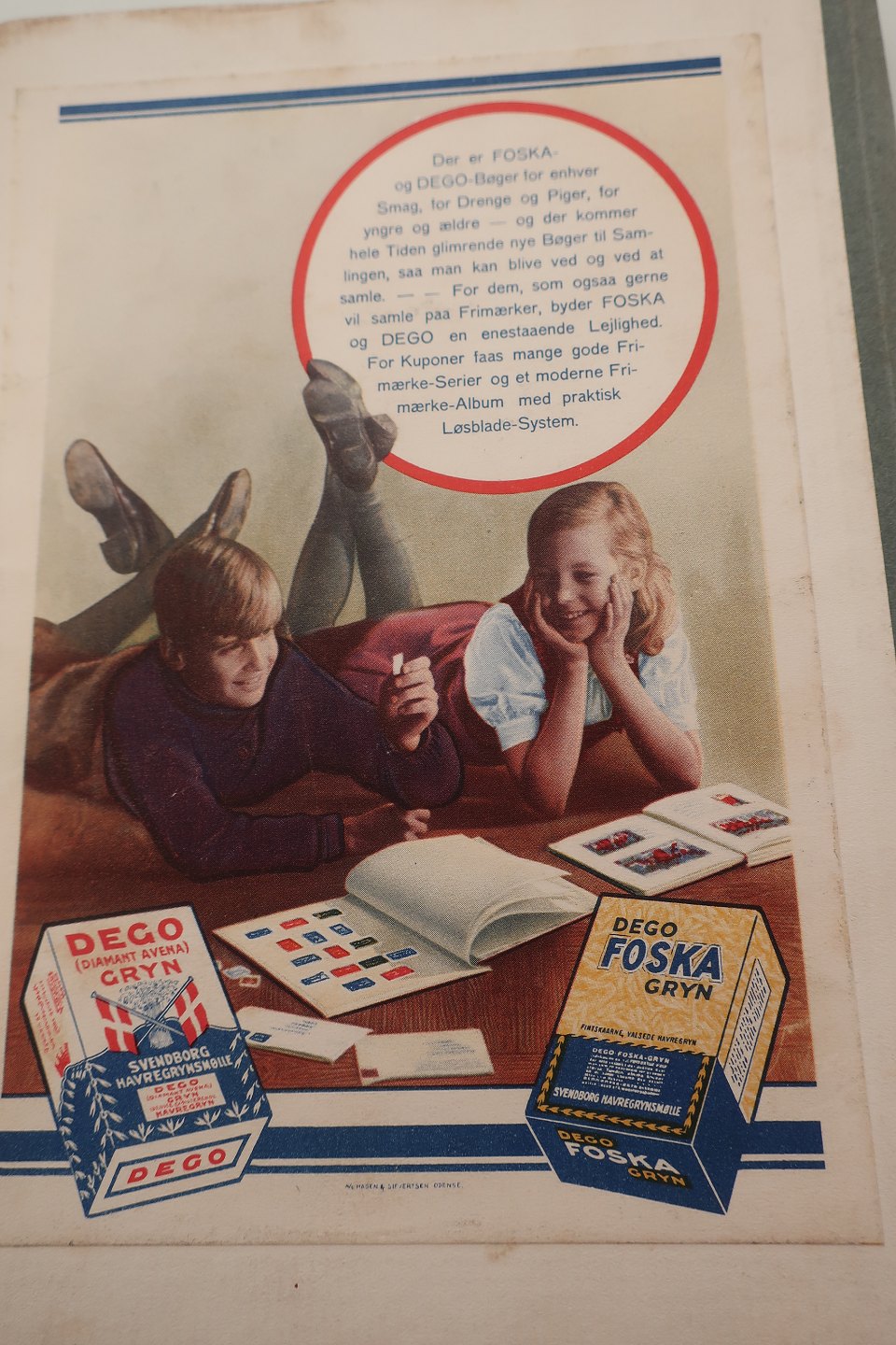 Reklamer for Foska-gryn og Diamant Avema-gyn på bagsiden. Begge typer gryn er fra Deco - Svendborg Havregrynsmølle