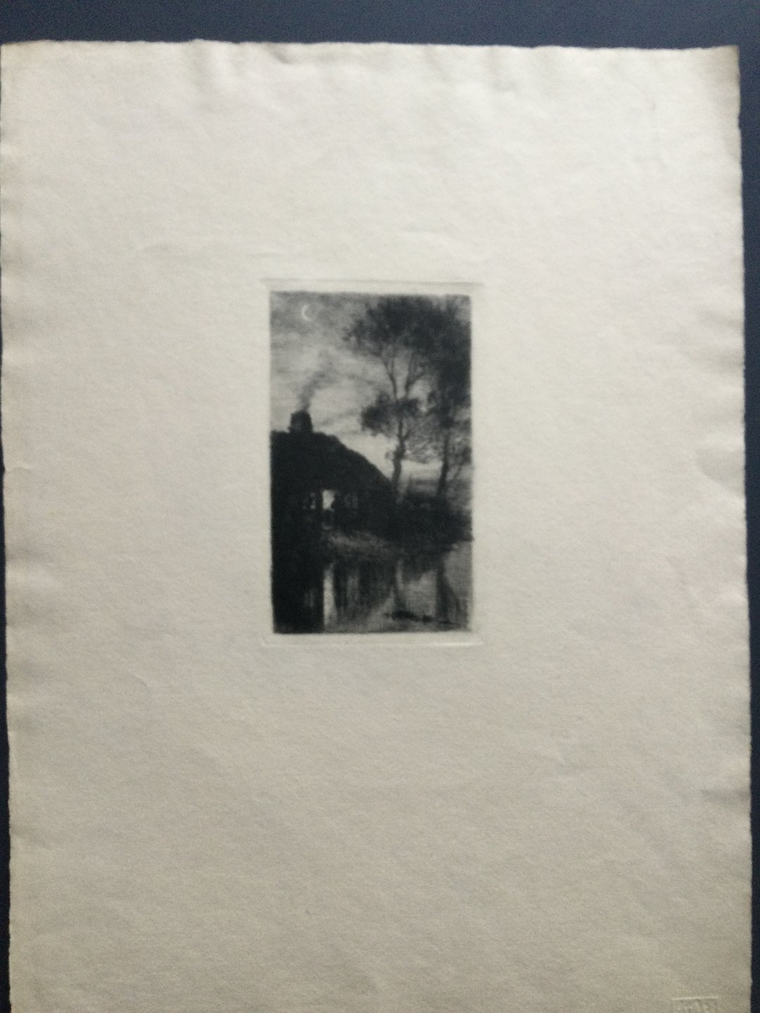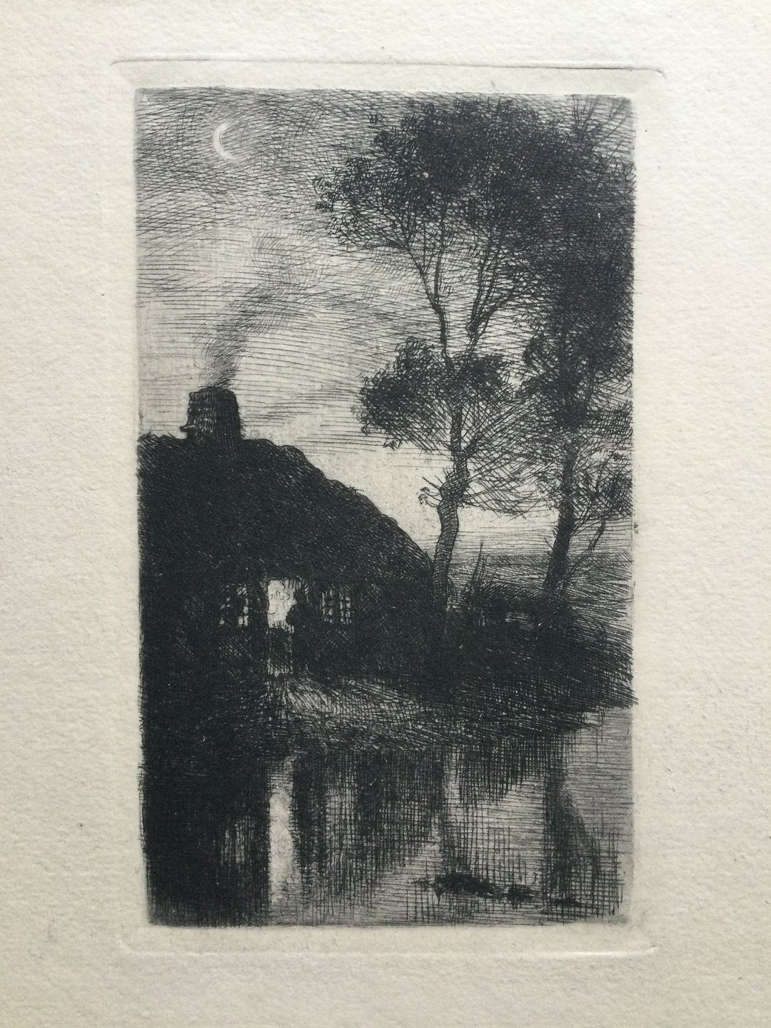 Radering af August Jerndorff - Aftenlandskab med smedje.
