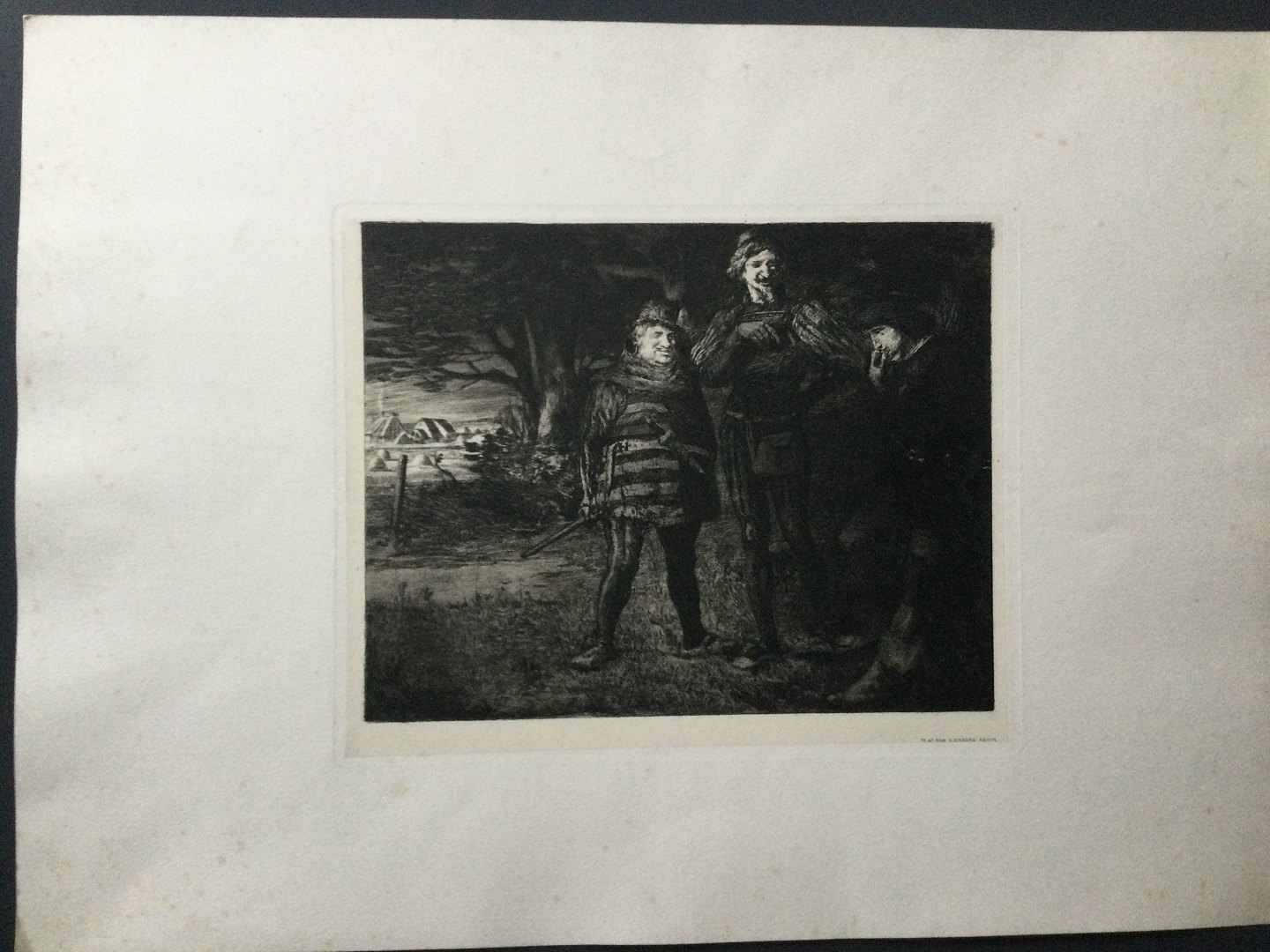 Radering - Hans Nikolaj Hansen - 1897 - De tre Skalke "Rådslagningen".
