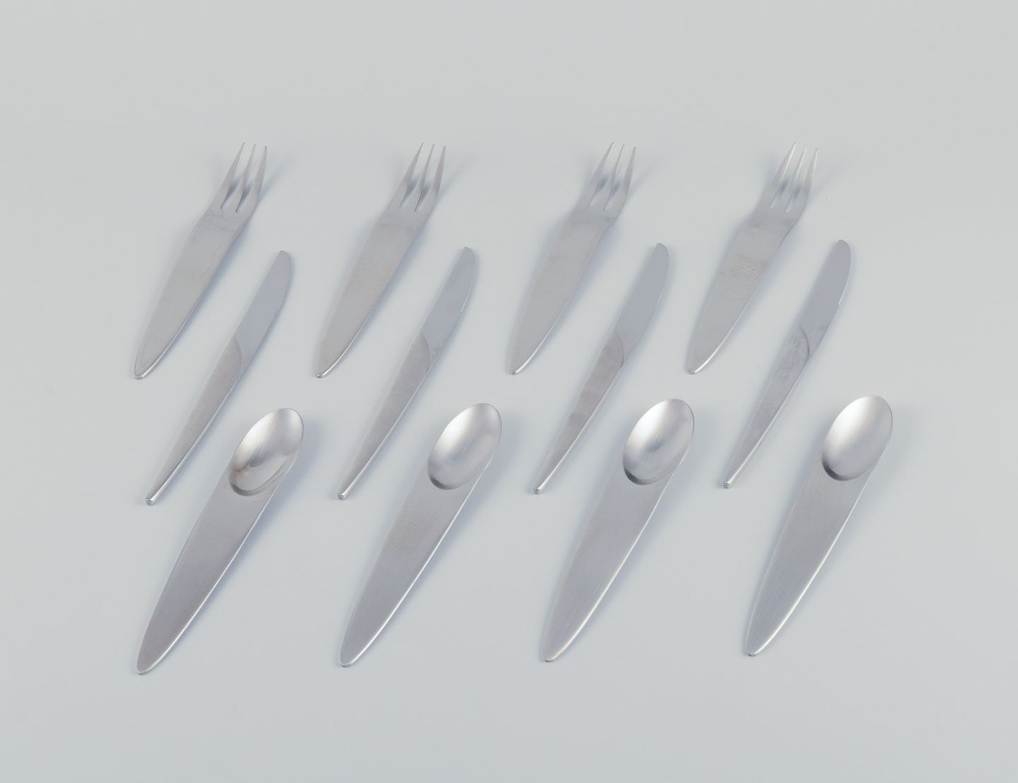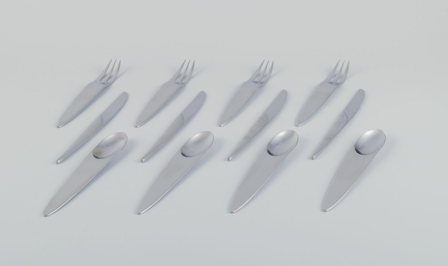 Frokostservice til fire personer bestående af fire frokostknive, fire frokostgafler og fire dessertskeer. 12 dele totalt.