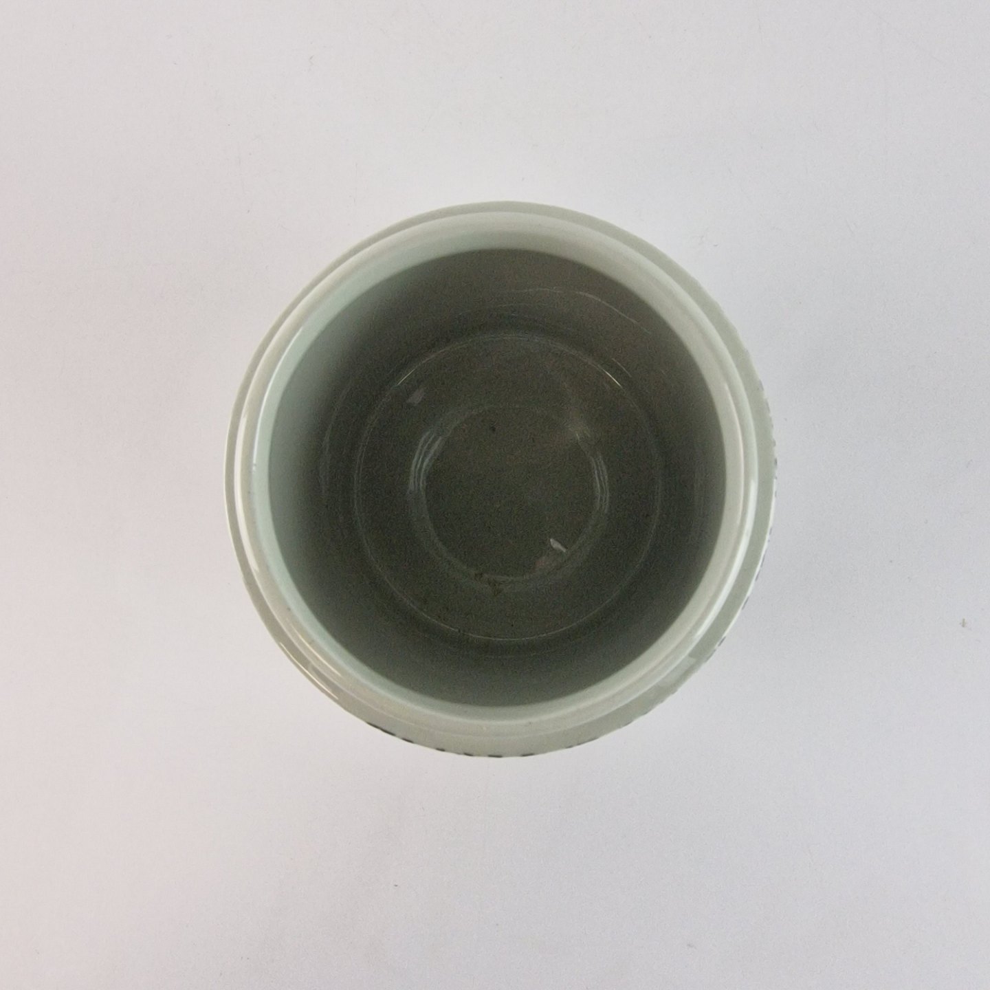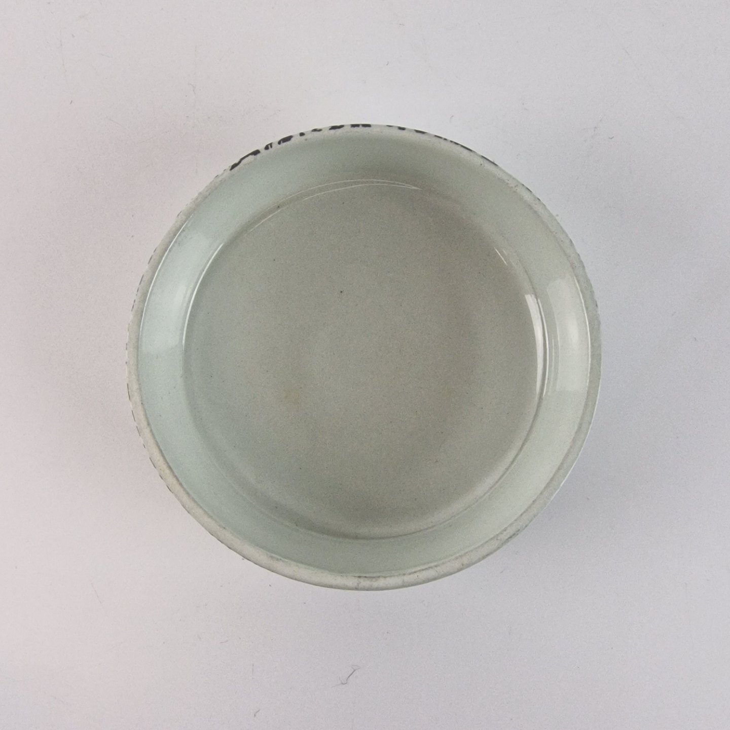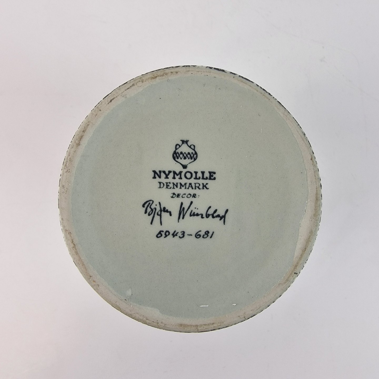Krukke med låg dekoreret med det klassiske sort/hvide mønster. Flere forskellige motiver. Nr. 5943-681, arkivfoto