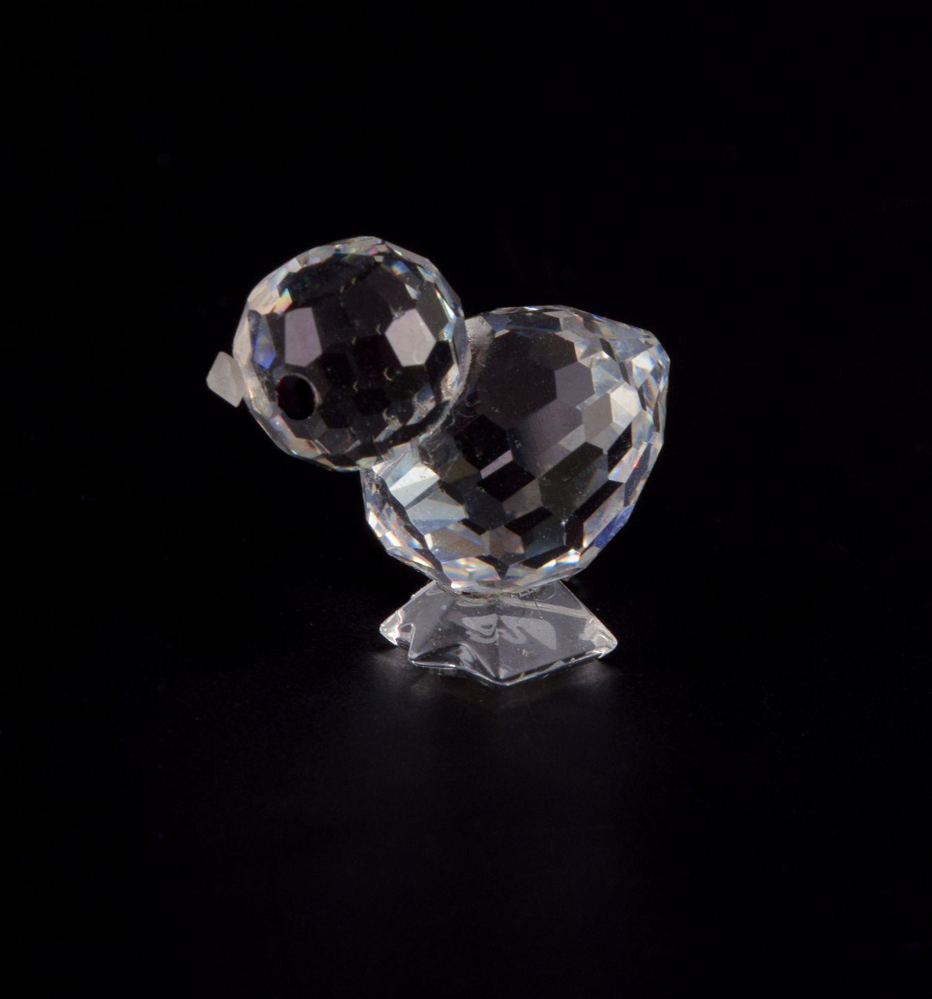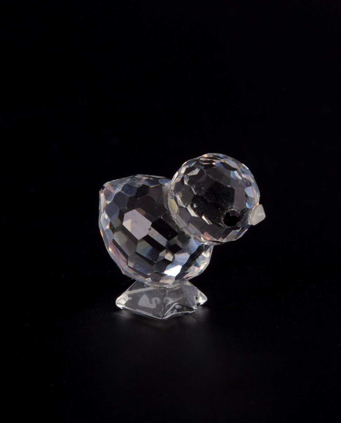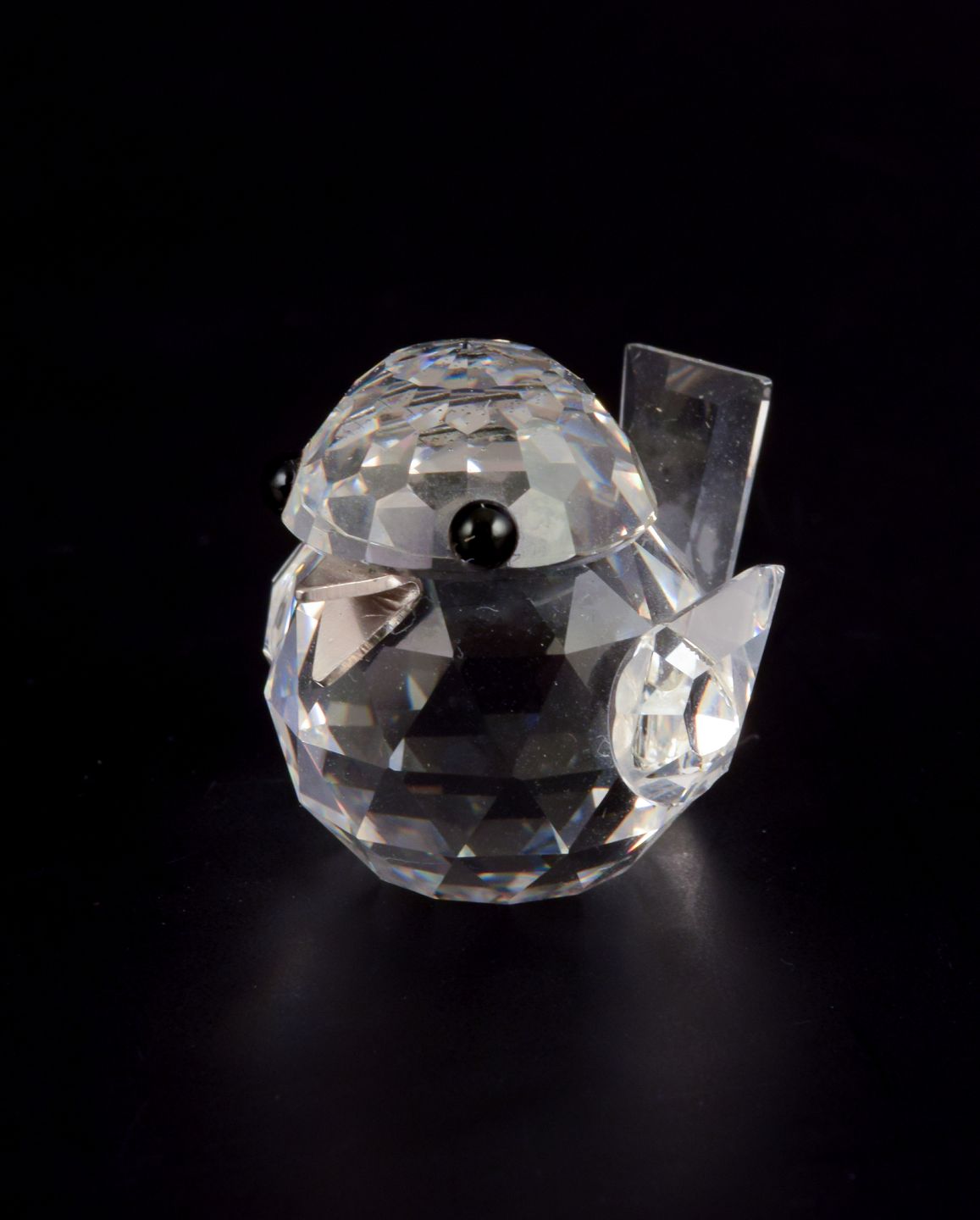 Fire miniaturefigurer af fugle i facetslebet krystalglas.