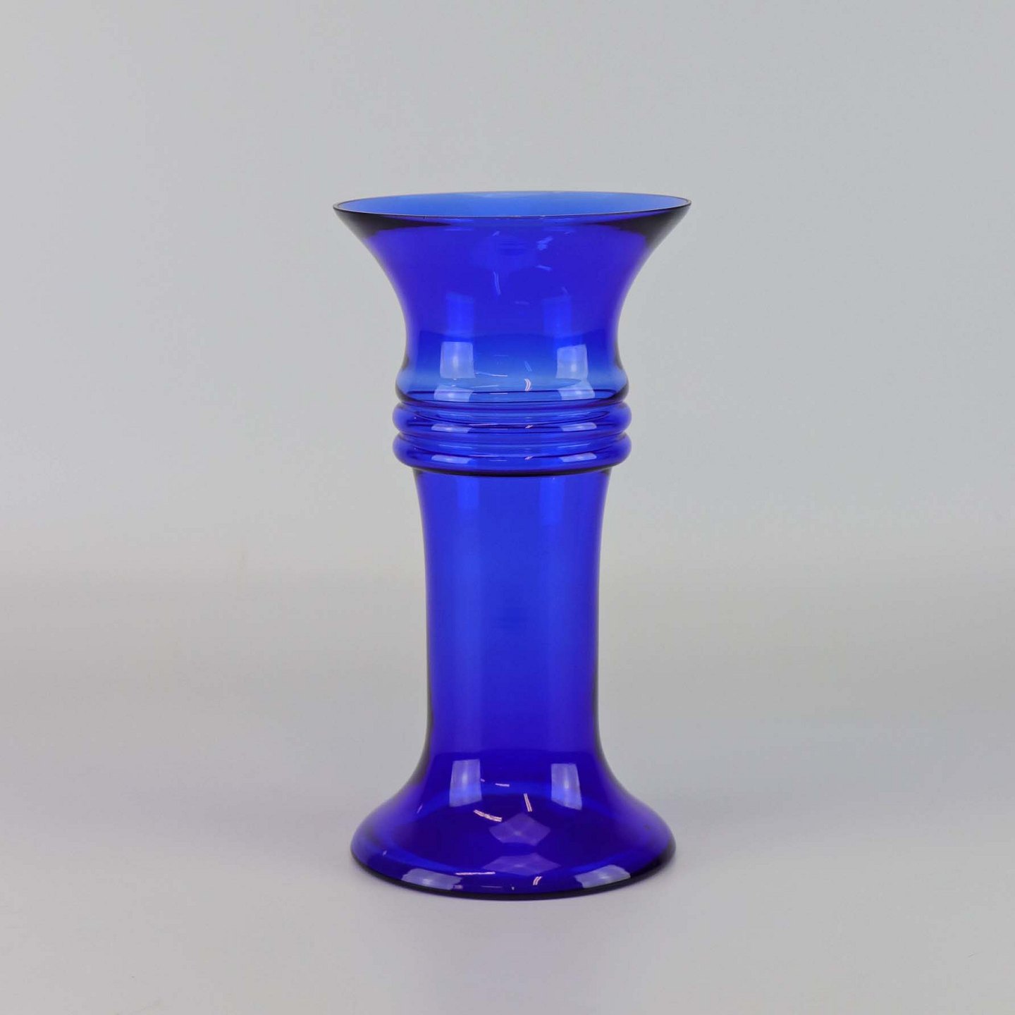 Vase i klar blåt mundblæst glas fra serien Harmony