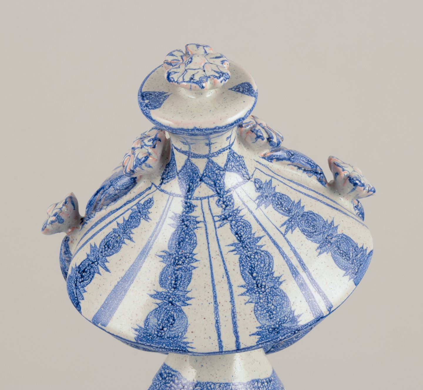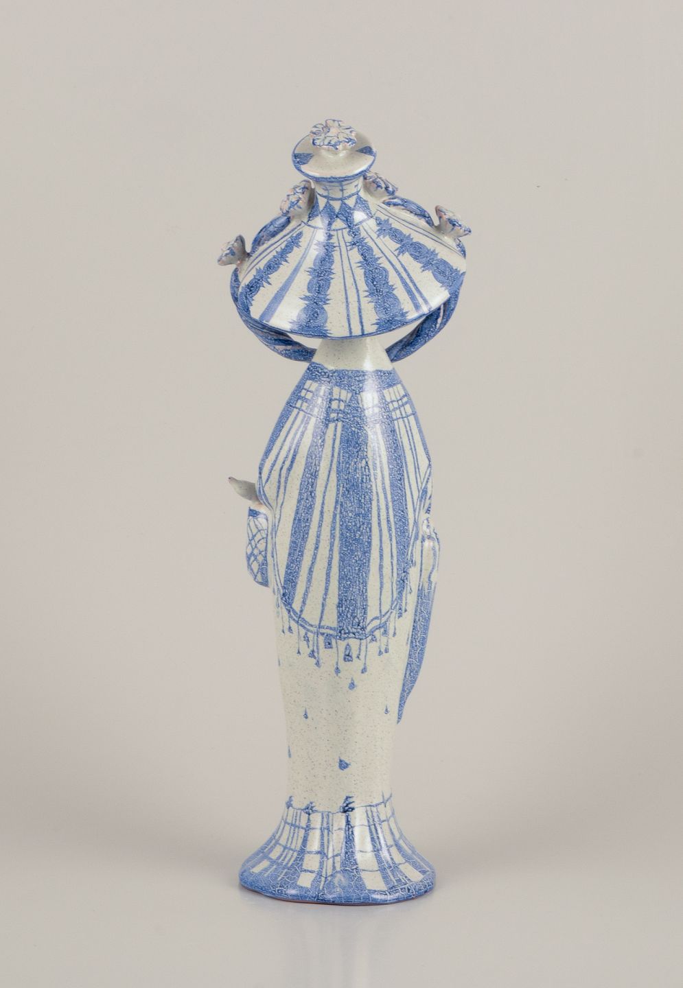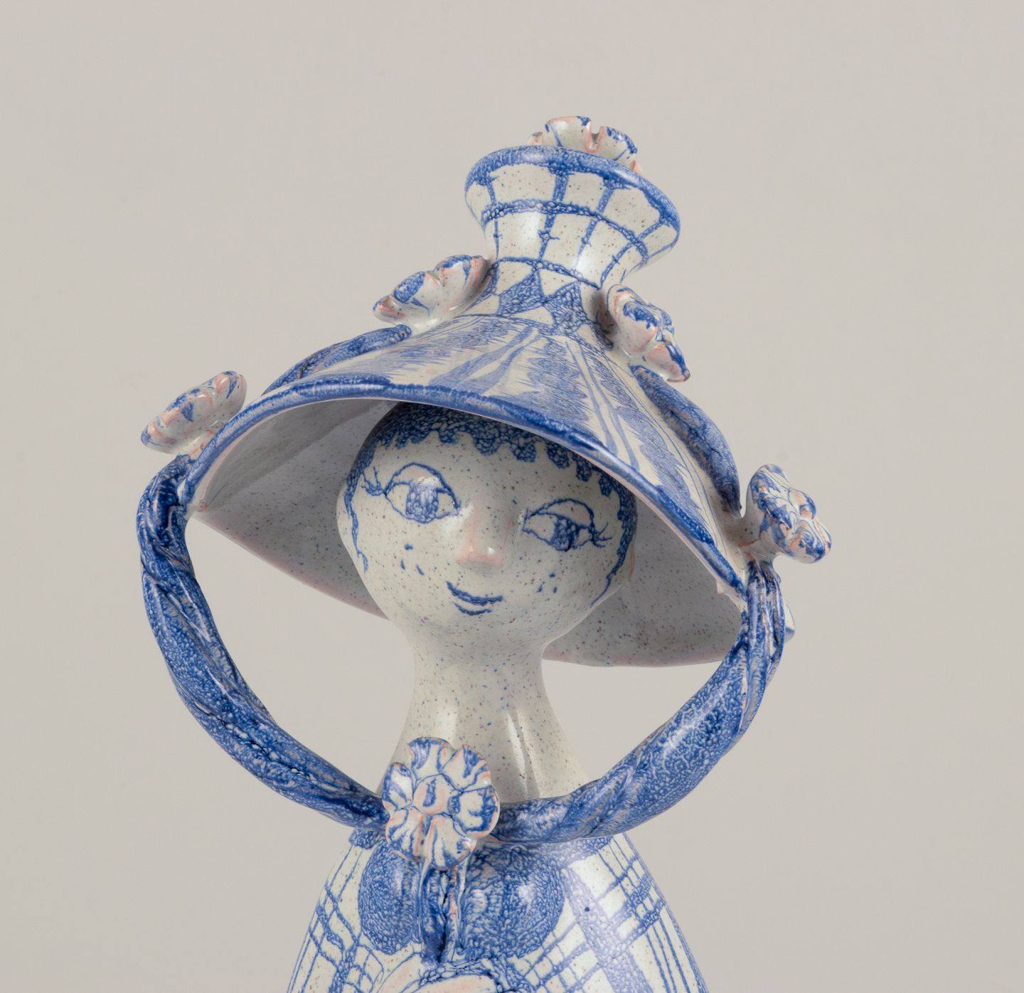 Bjørn Wiinblad (1918-2006). "Efterår" fra serien "De fire årstider", figur i blåglaseret lertøj.