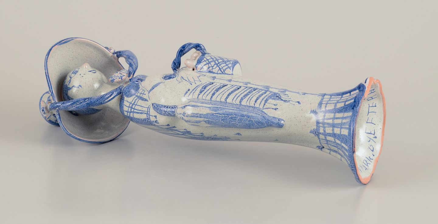Bjørn Wiinblad. "Efterår" fra serien "De fire årstider", figur i blåglaseret lertøj.