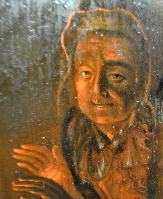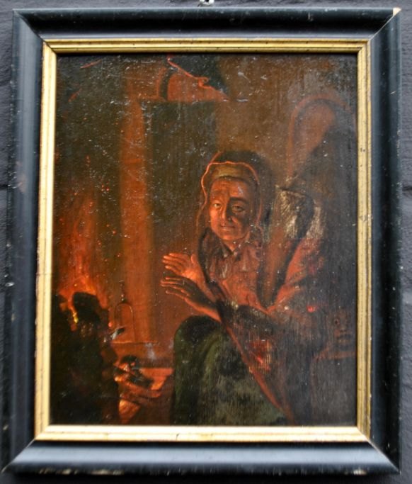 Schalken, Godfried van (1643 - 1706) Netherlands/Denmark - style: A witch in a kitchen. Oil on oak panel. Unsigned. 26.5 x 21.5 cm.
