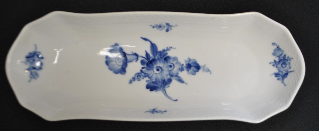 Royal Copenhagen, Sellerifad, Blå blomst flettet, 10/8072, 20. årh. København, Danmark. Stemplet. L.: 37 cm. B.: 13,7 cm.