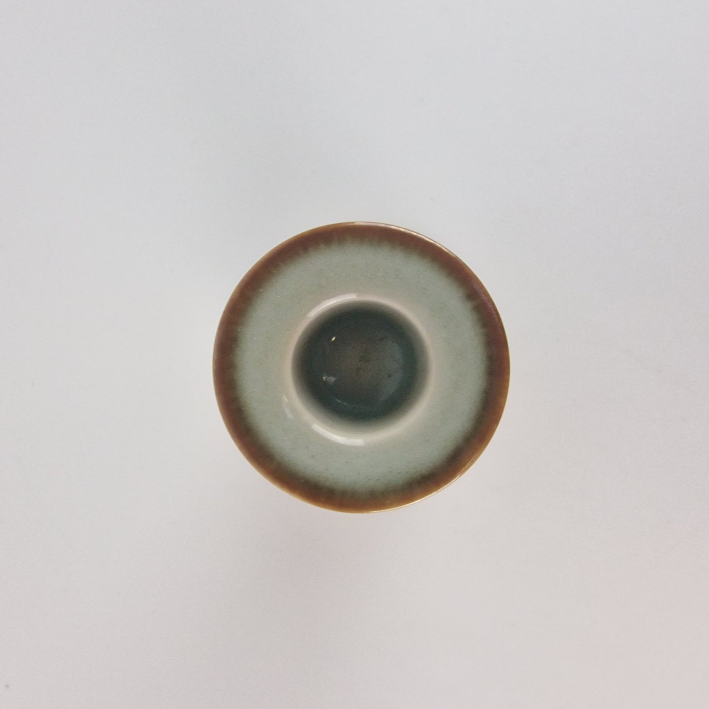 Diskos er af ovnfast stentøj. Stellet er gråt og håndmalet med brune og grønlige detaljer
