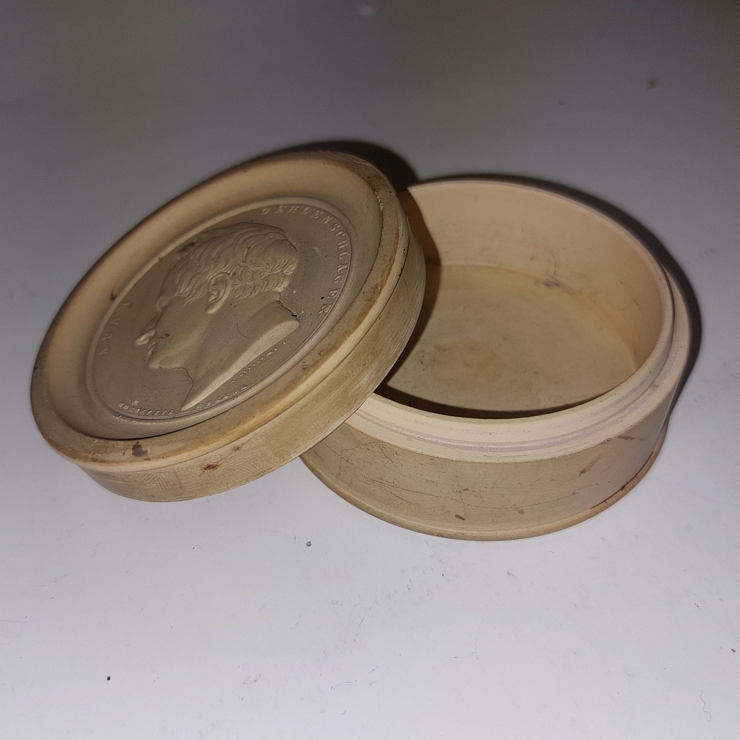 P. Ipsen:.Terracotta dåse med portræt af Oehlenschläger på låget 19. århundrede