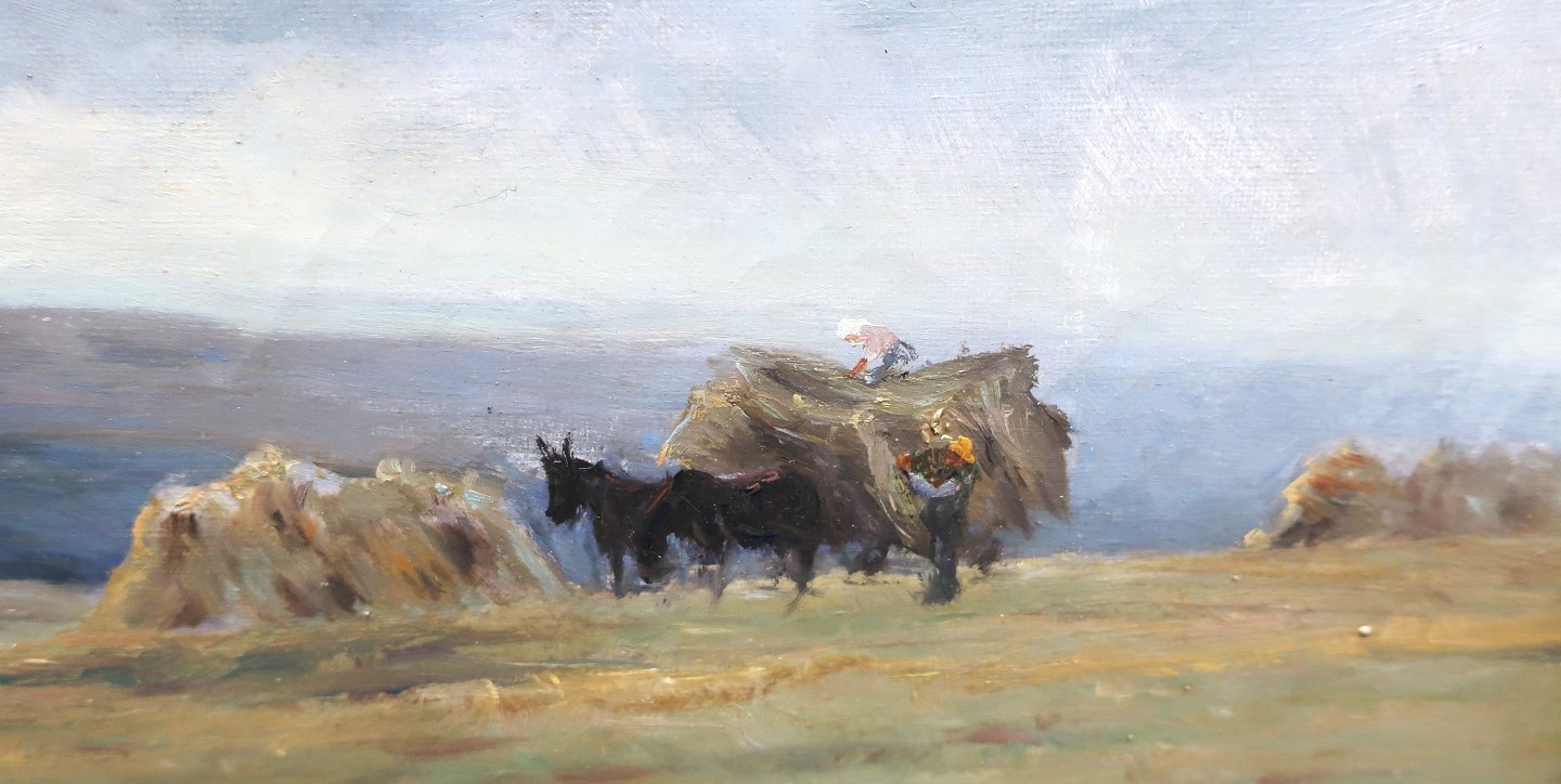 Michael Therkildsen.(1850-1925). Maleri forestillende markarbejde (1902). Mål med ramme 55*65 cm. Mål uden ramme 39*49 cm.
