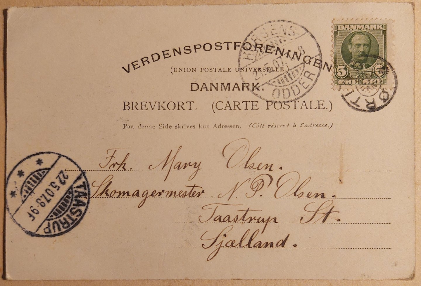 Postkort: Motiv fra Ørting. Annulleret Stjernestempel ØRTING i 1907. Sidestempel HORSENS. I god stand