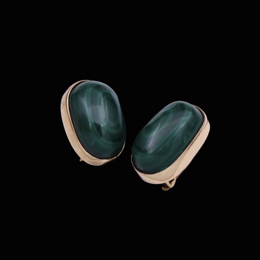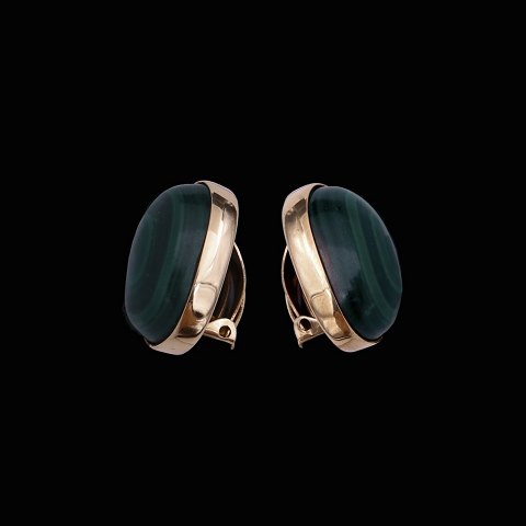 Boy Johansen. Øreklips i 14k guld med malakit.