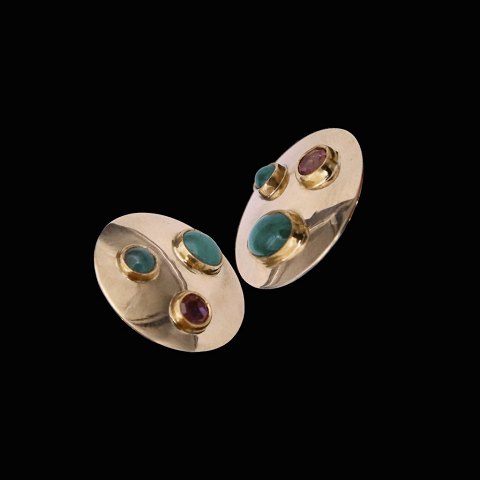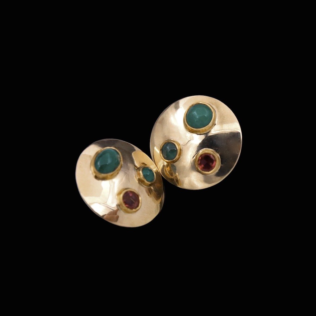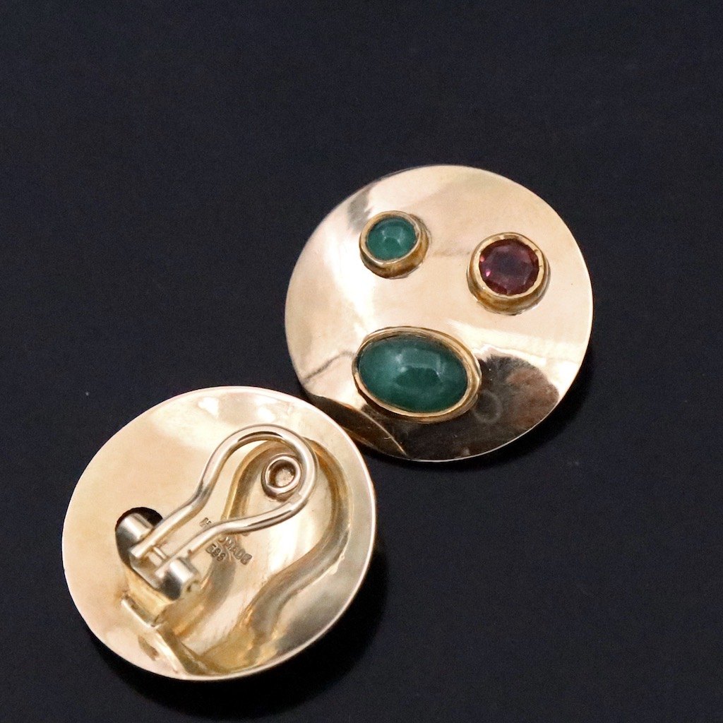 Steen Solodziuk - Kbh. Øreklips i 14k guld med smaragd og turmalin.