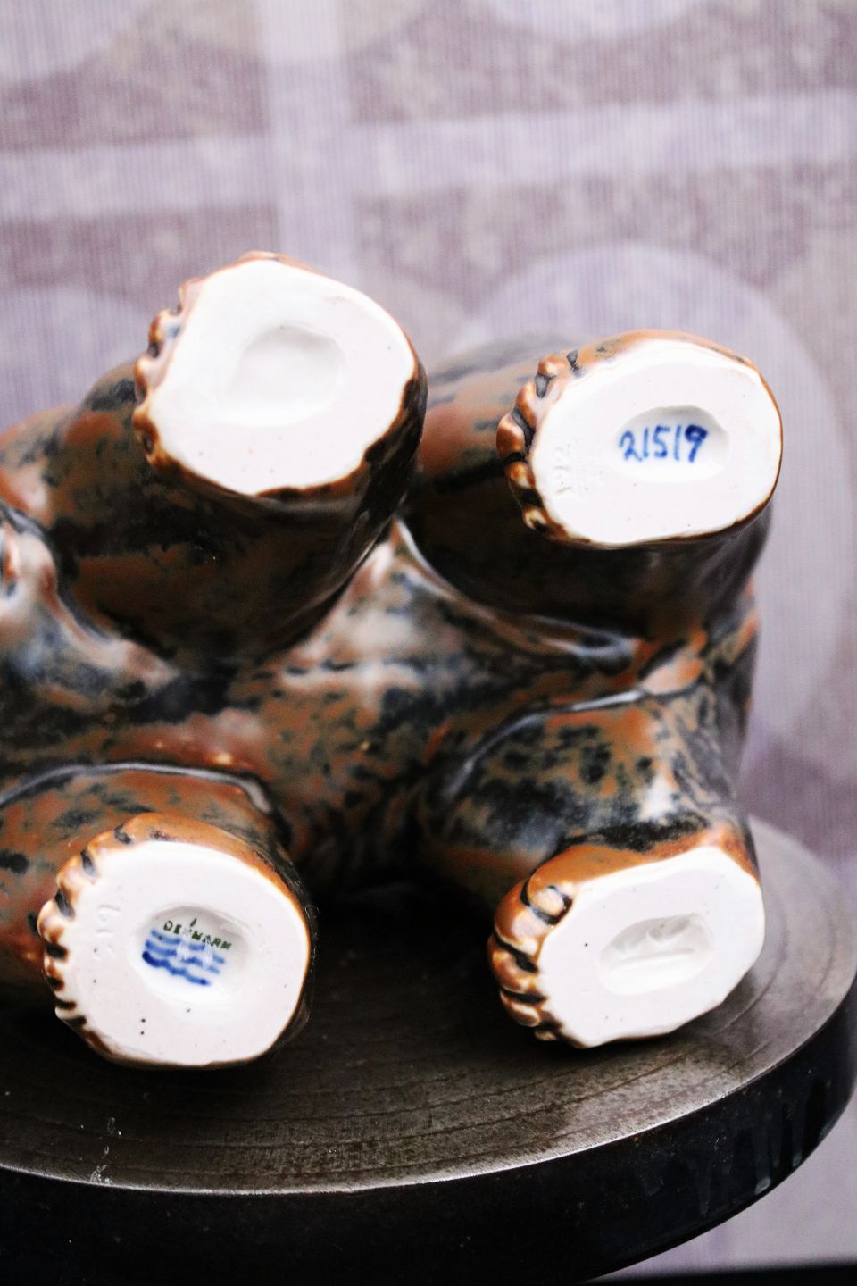 Royal Copenhagen glaseret stentøjsfigur af brun bjørn.