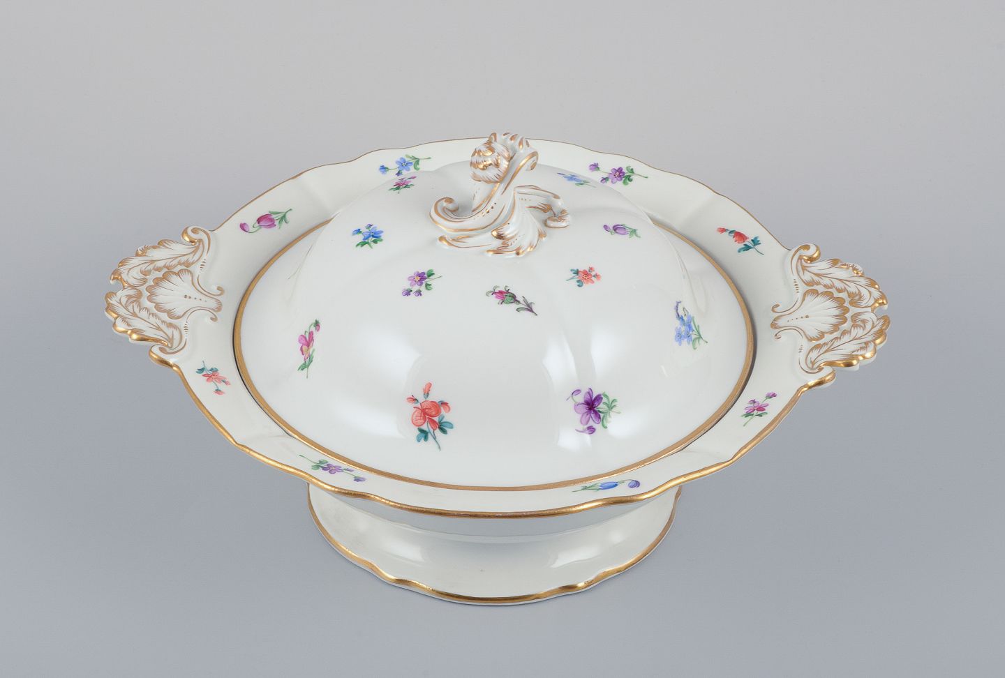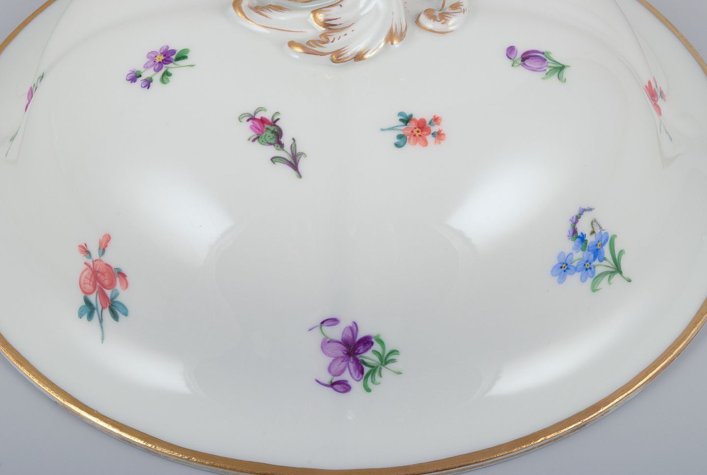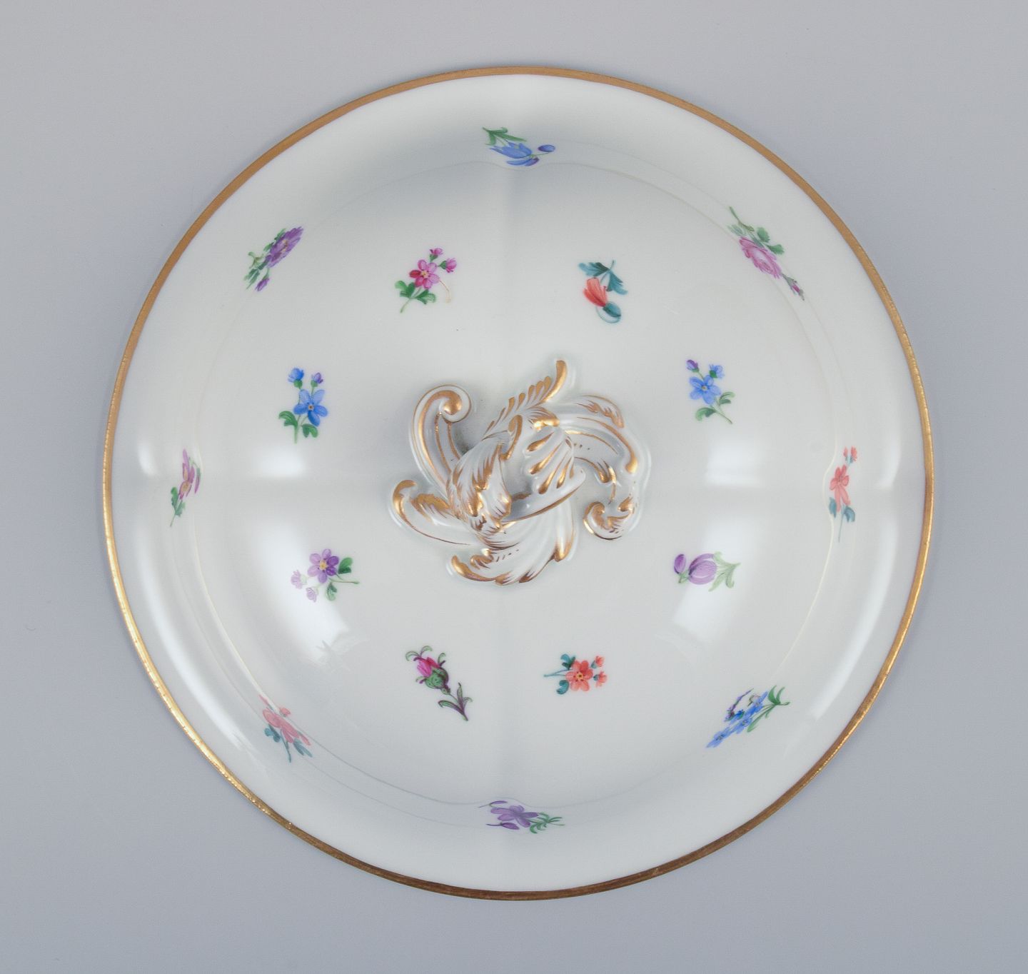 Håndmalet med polykrome blomstermotiver, guldkant.