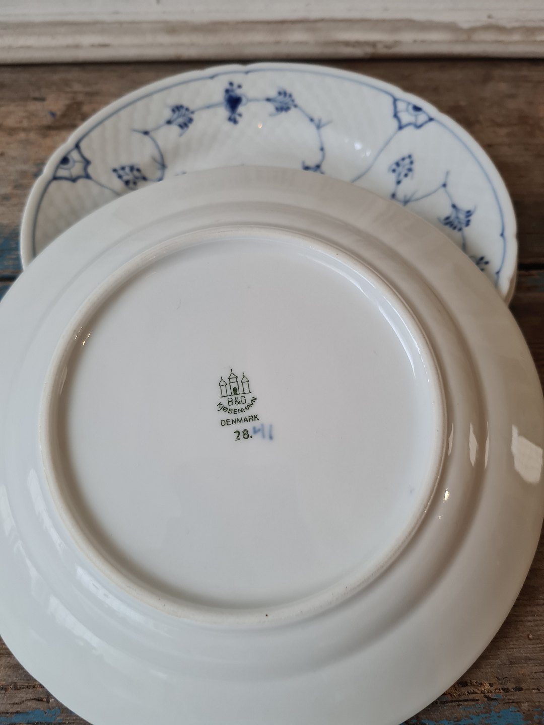 B&G Blåmalet stor kagetallerken no. 28 - 17,5 cm.