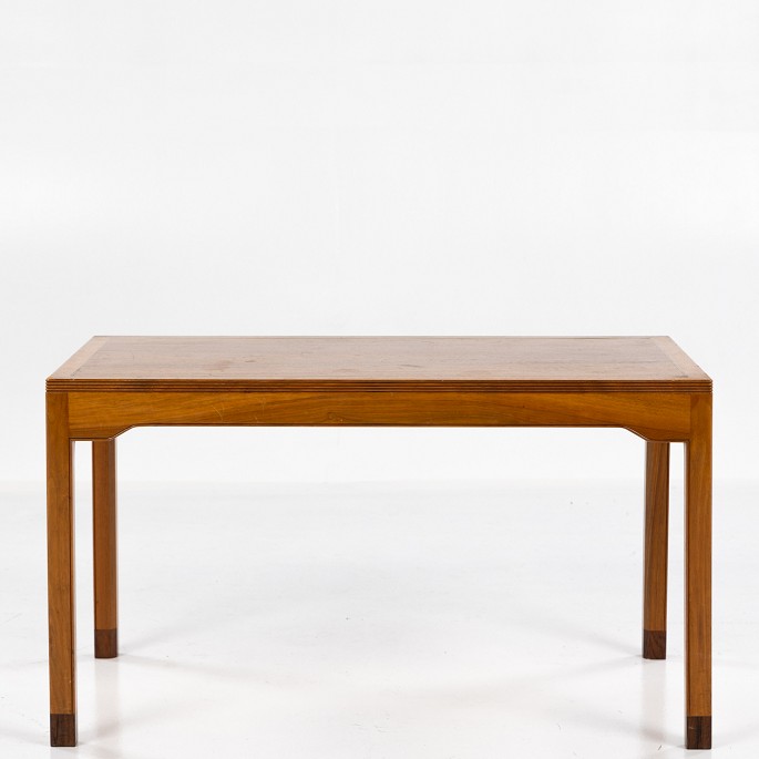 Coffee table in caucasian walnut, brass inlay and profiled edge.