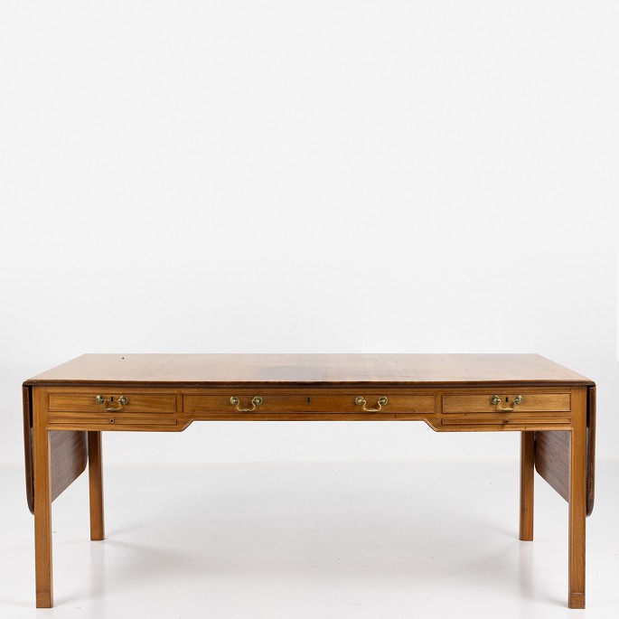 Model 4113 - Skrivebord i massiv mahogni med klapper, udtræksplader og skuffer med håndtag af messing. Udtræksplader tilføjer 92 cm ekstra.