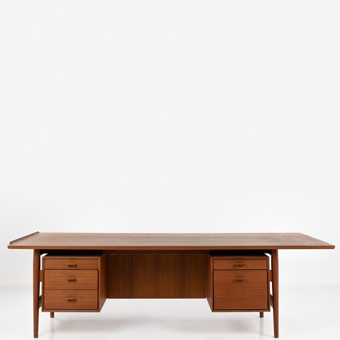 Model 216 - Skrivebord i teak med fem skuffer og kehlet kant.