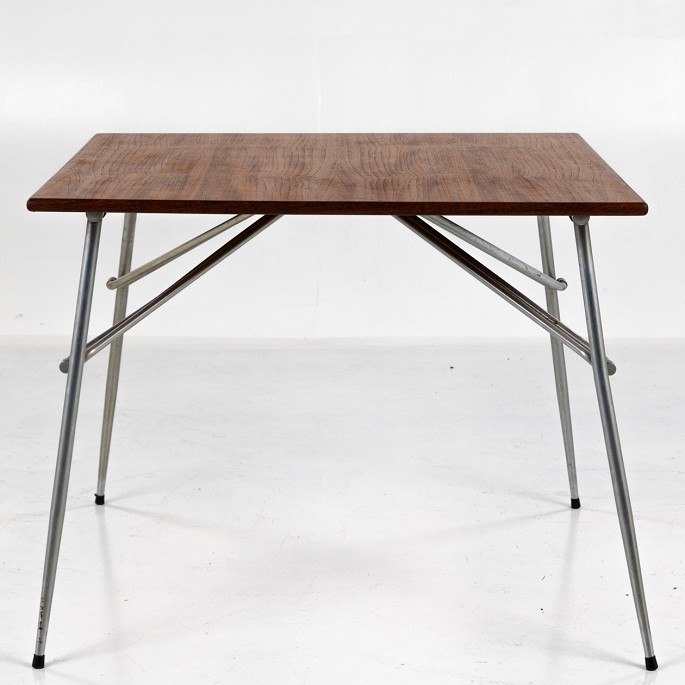 Spisebord i teak og ben af stål.