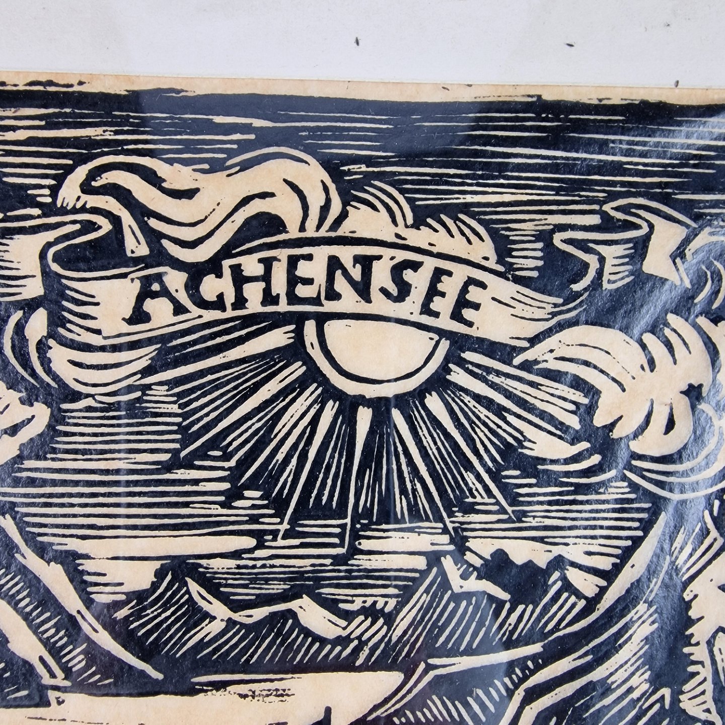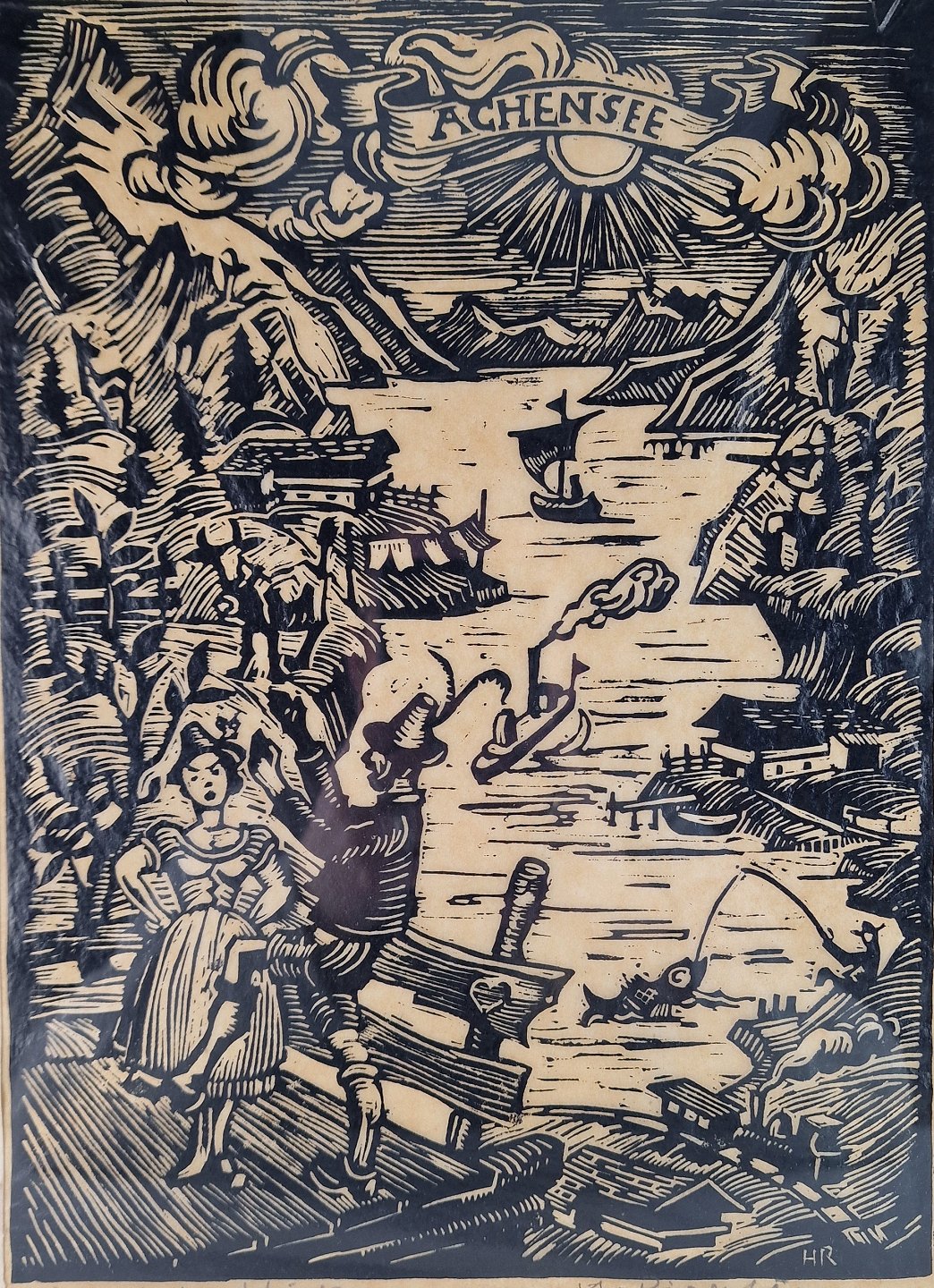 Træsnit med motiv af Achensee i Østrig