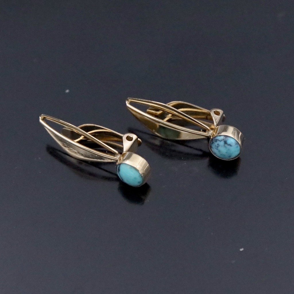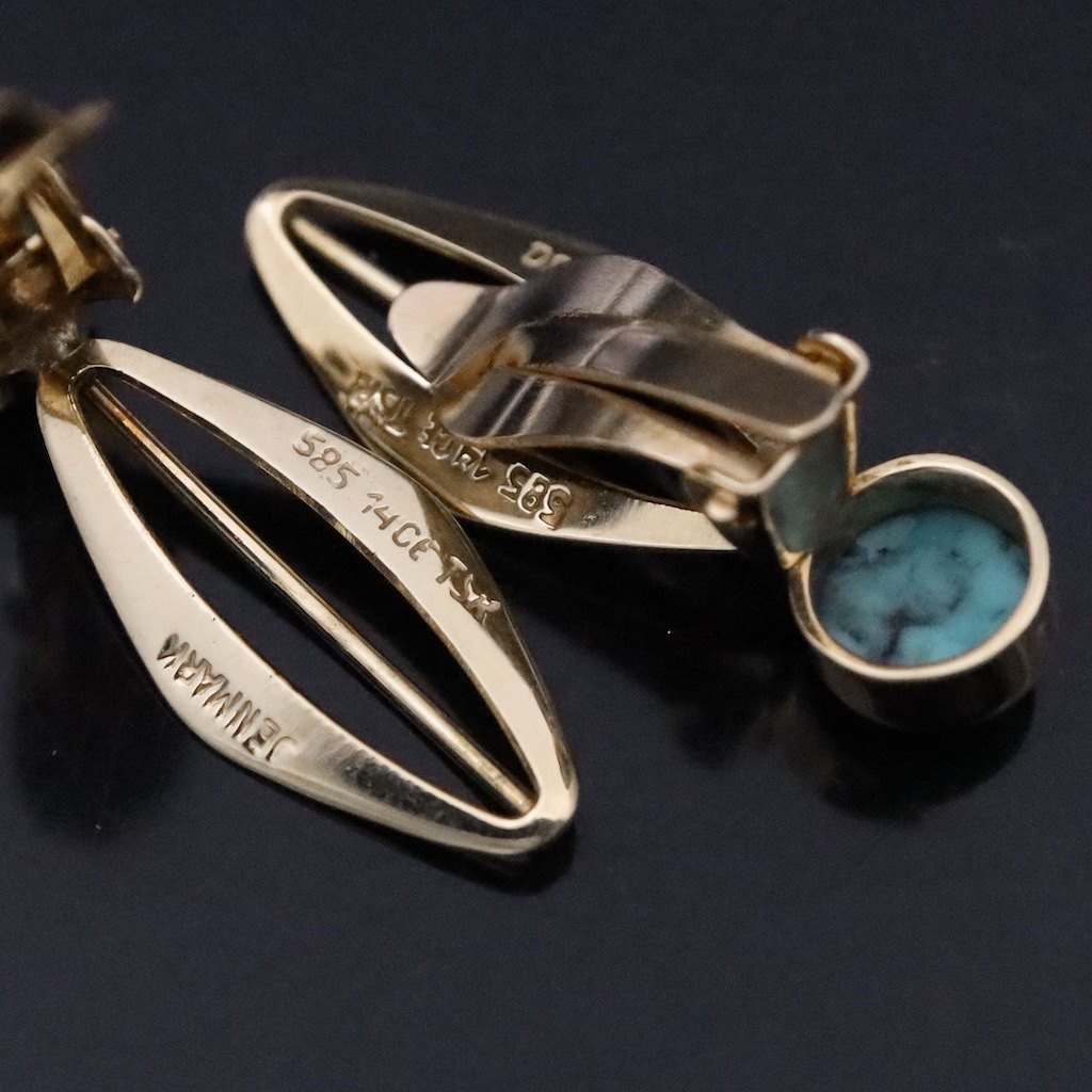 Skat-Rørdam. Øreklips i 14k guld med turkis.