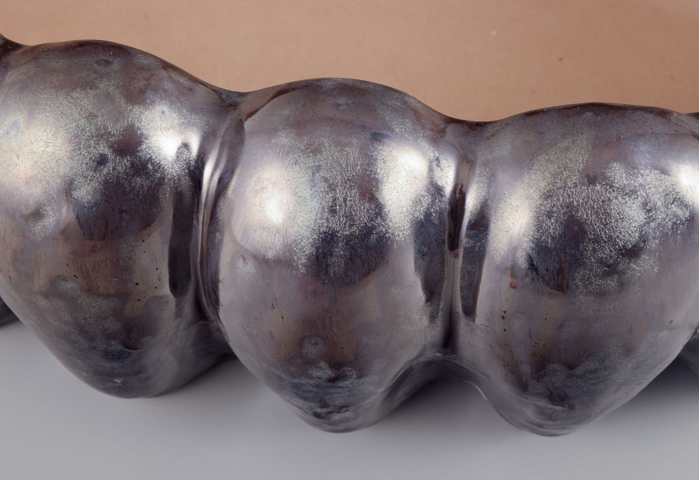 Stor oval vase med iøjnefaldende metallisk glasur med spil i.