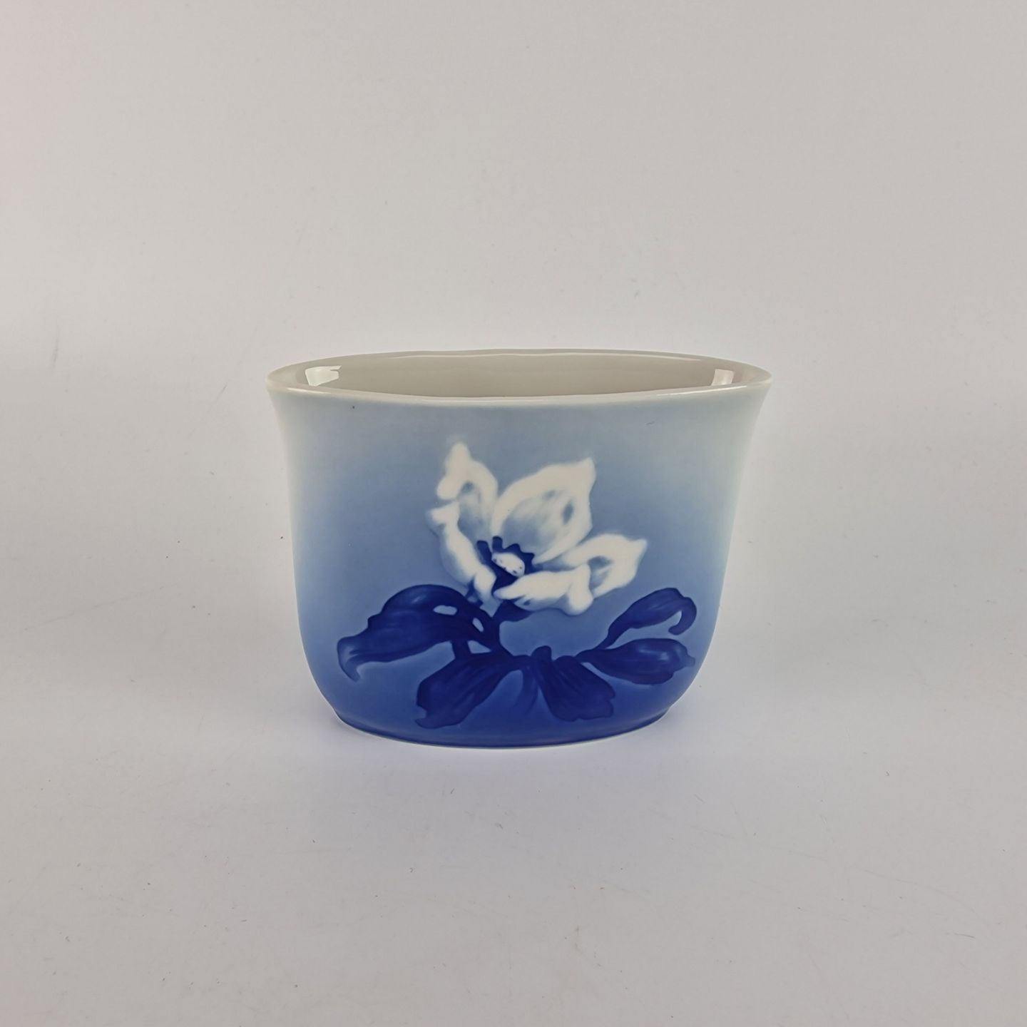 Julerose er hvidt porcelæn med gradueret blå farver, dekoreret med et motiv af en hvid julerose