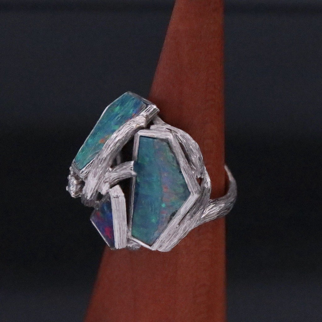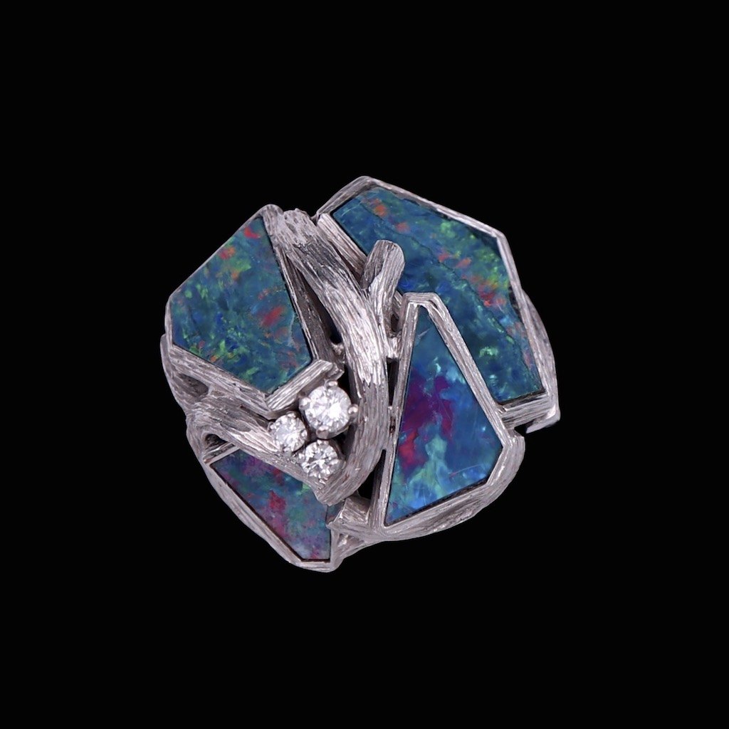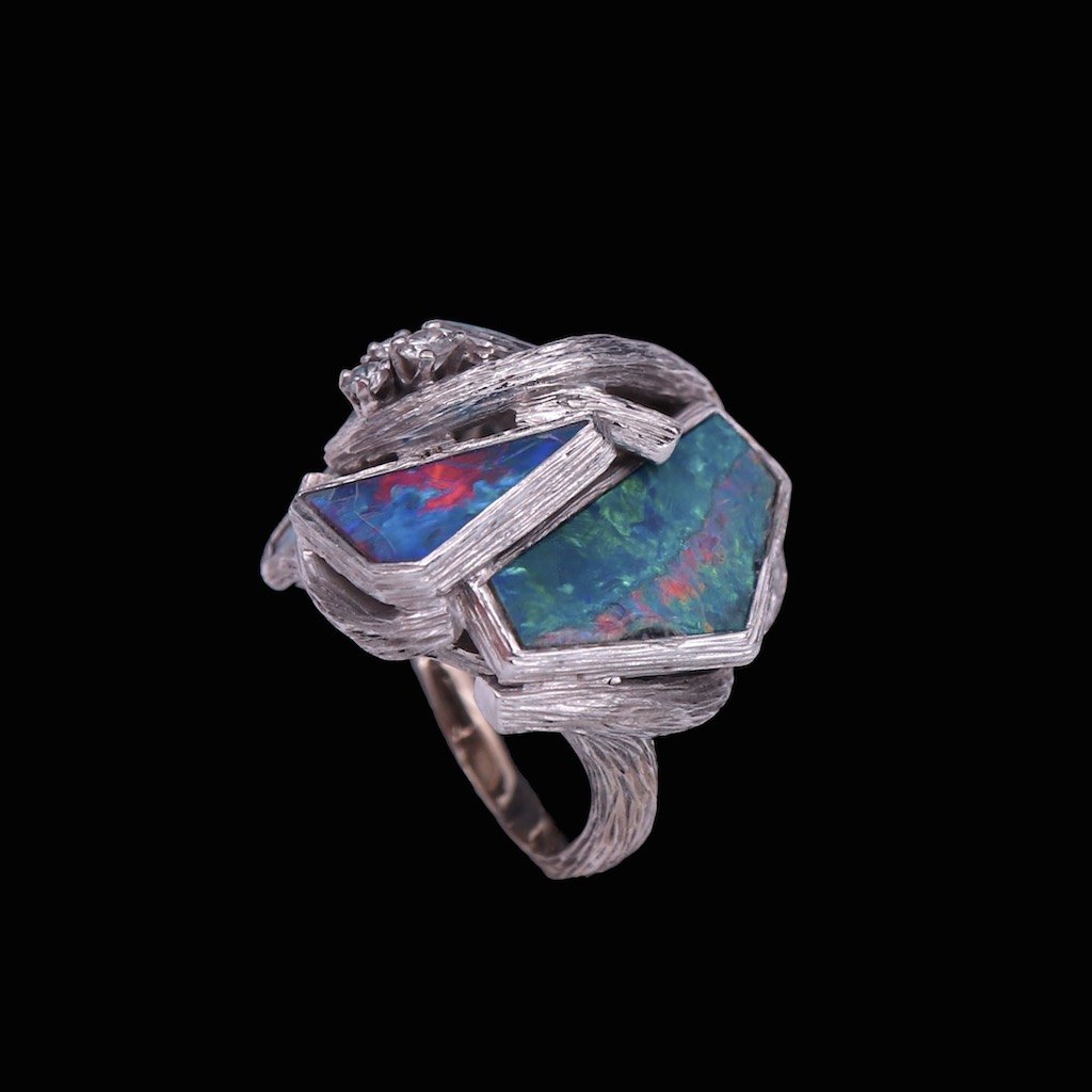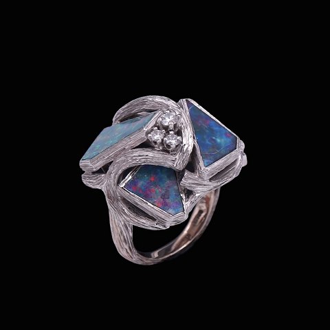 Augustin Julia-Plana. Ring i 18k hvidguld med opaler og brillanter.